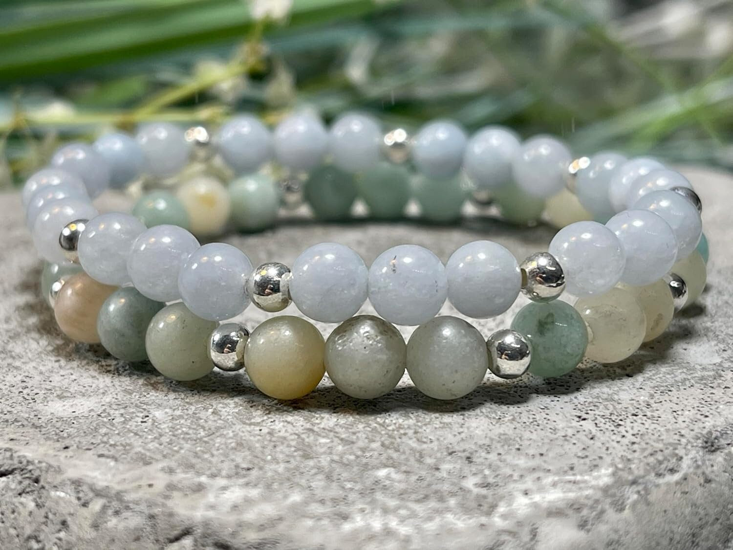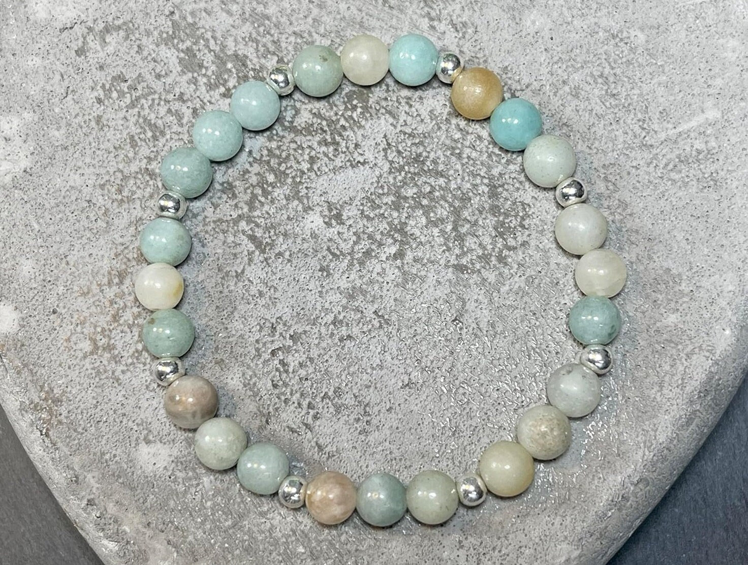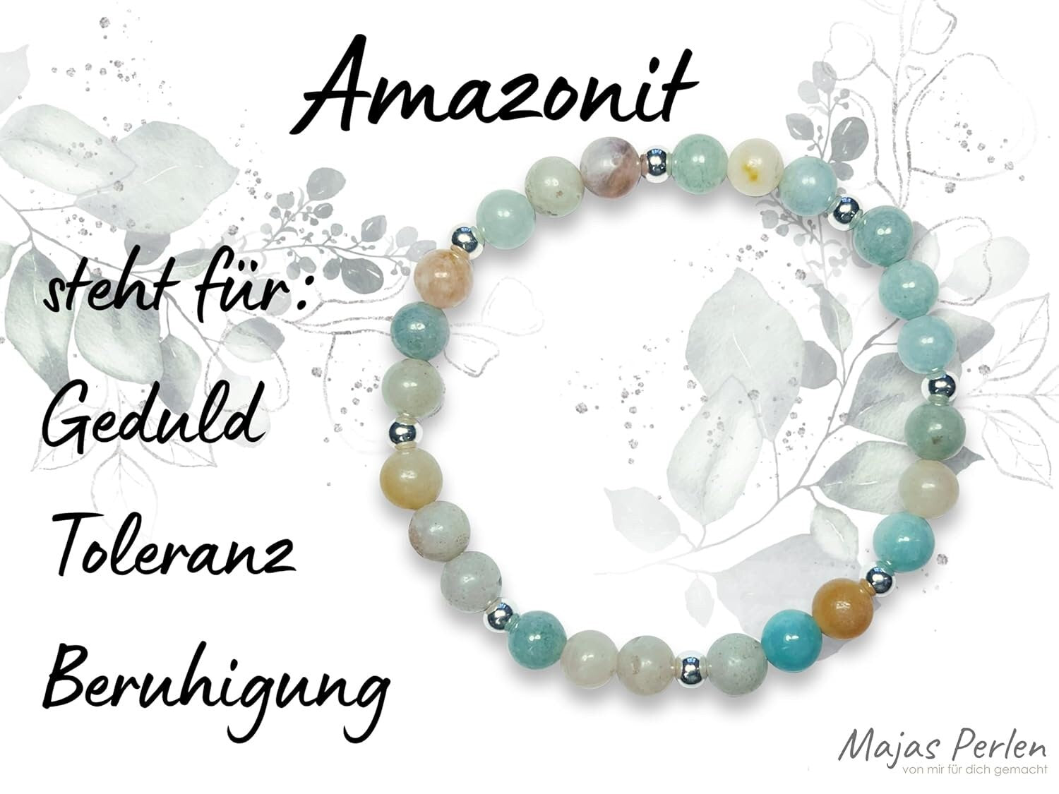 Amazonit Armband Perlen echt 6mm mit Edelstahlperlen 4mm Silber Gold oder Roségold spirituelles Perlenarmband Geduld Toleranz Beruhigung