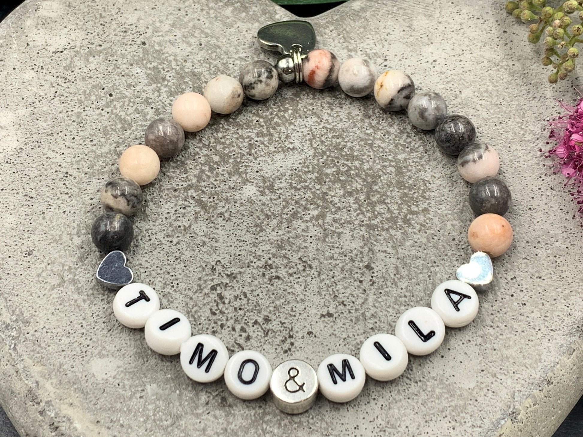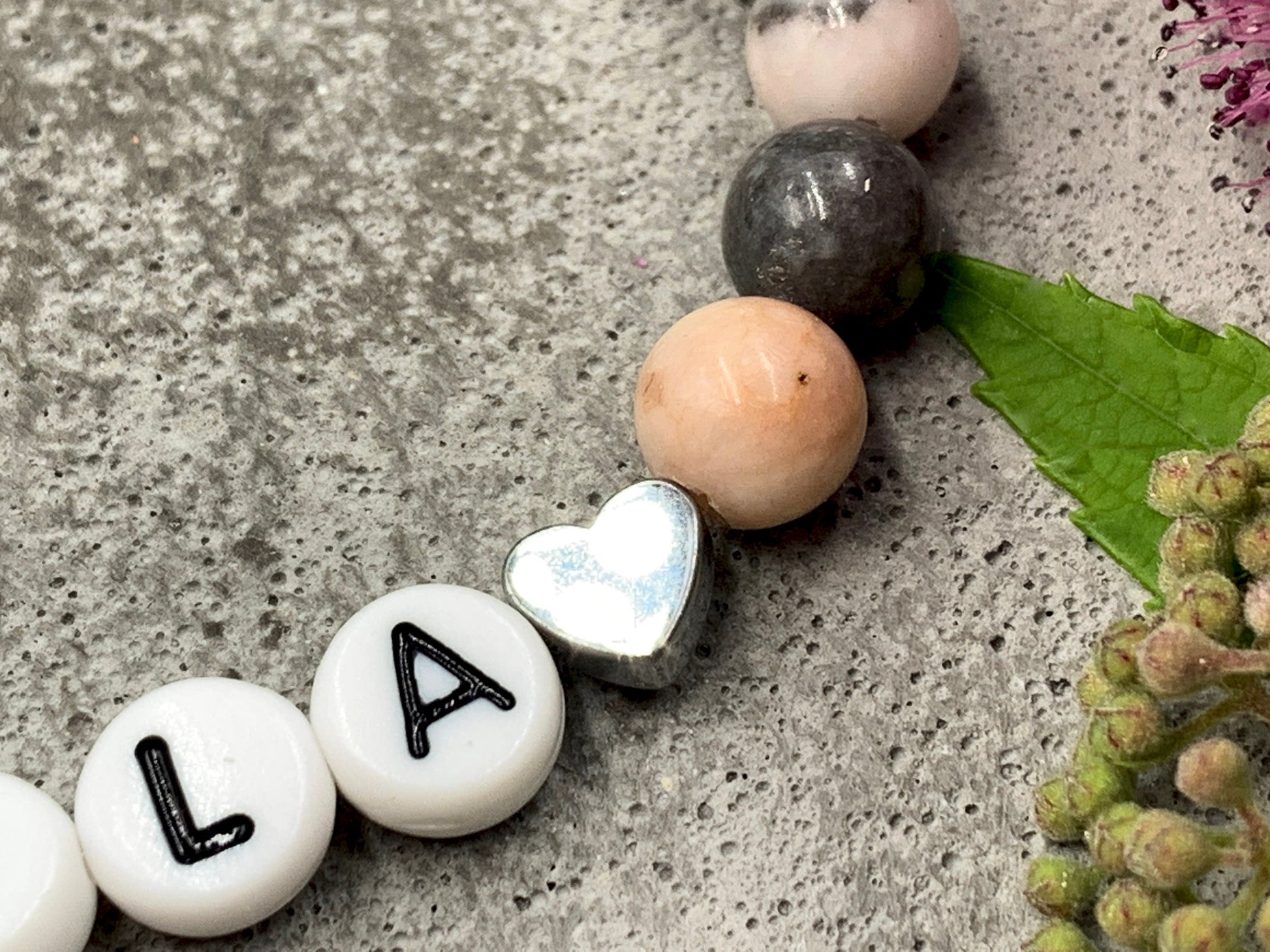 Mit dem Armband aus Amazonit kannst du die Namen deiner Lieblingsmenschen jederzeit am Handgelenk tragen – für jeden sichtbar. Natürlich kannst du auch einem lieben Menschen eine Freude machen, indem du ihm ein solch persönliches Geschenk überreichst.