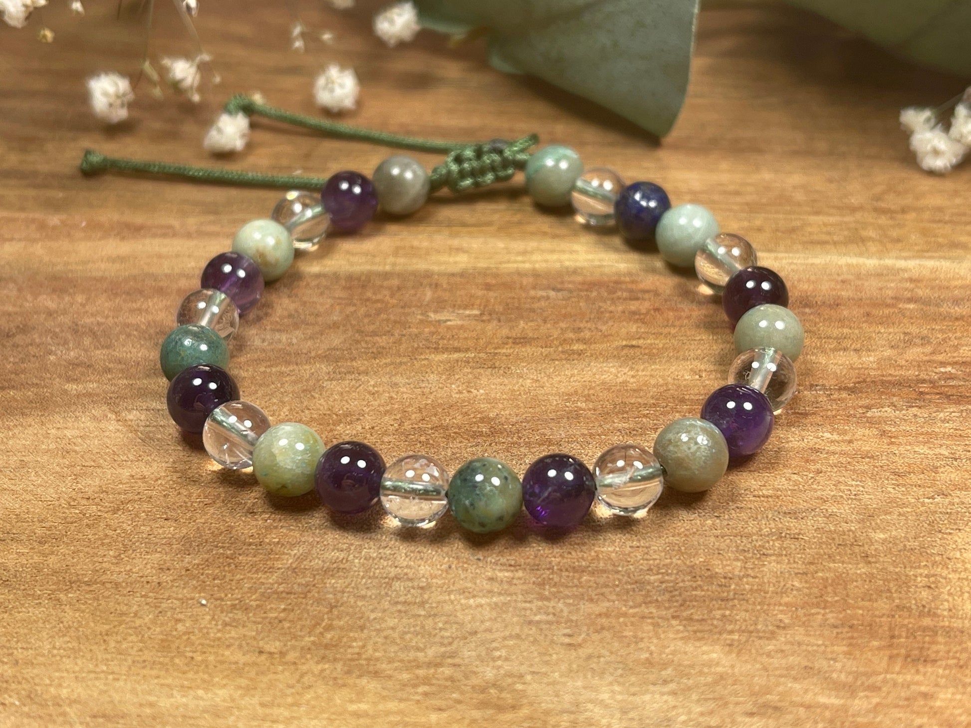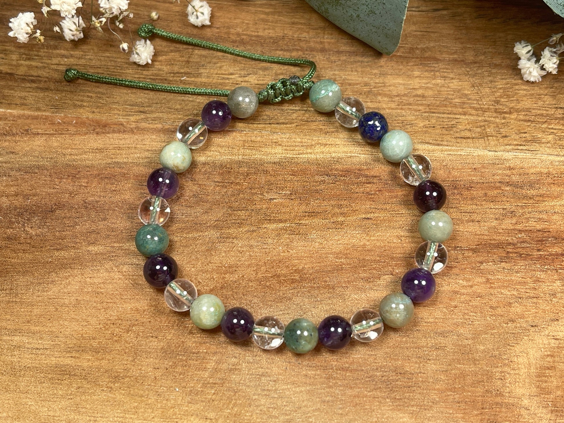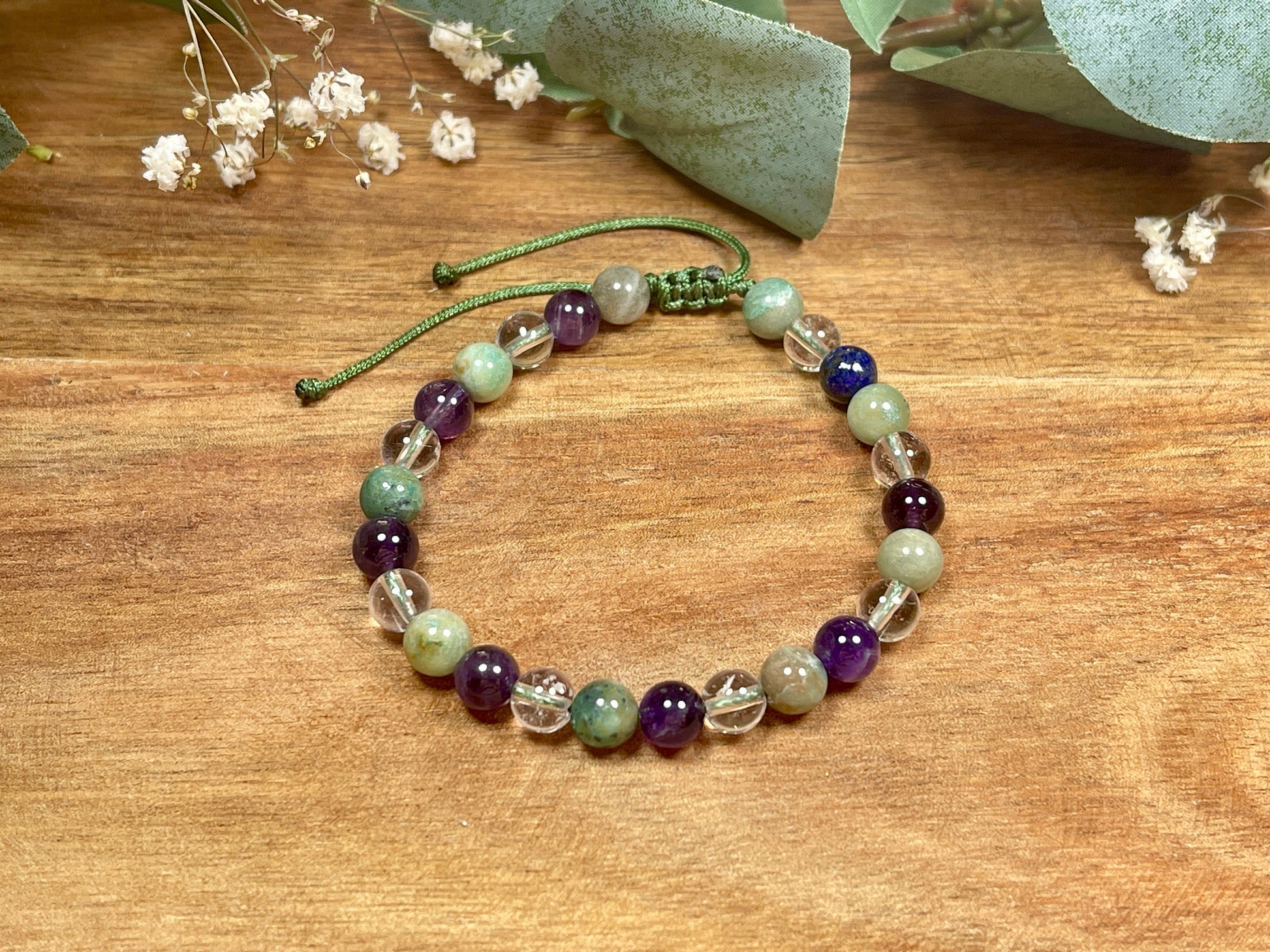 Ein Armband mit Amethyst, Bergkristall und Chrysokoll kann aufgrund der individuellen Eigenschaften dieser Steine vielfältige positive Wirkungen haben:
