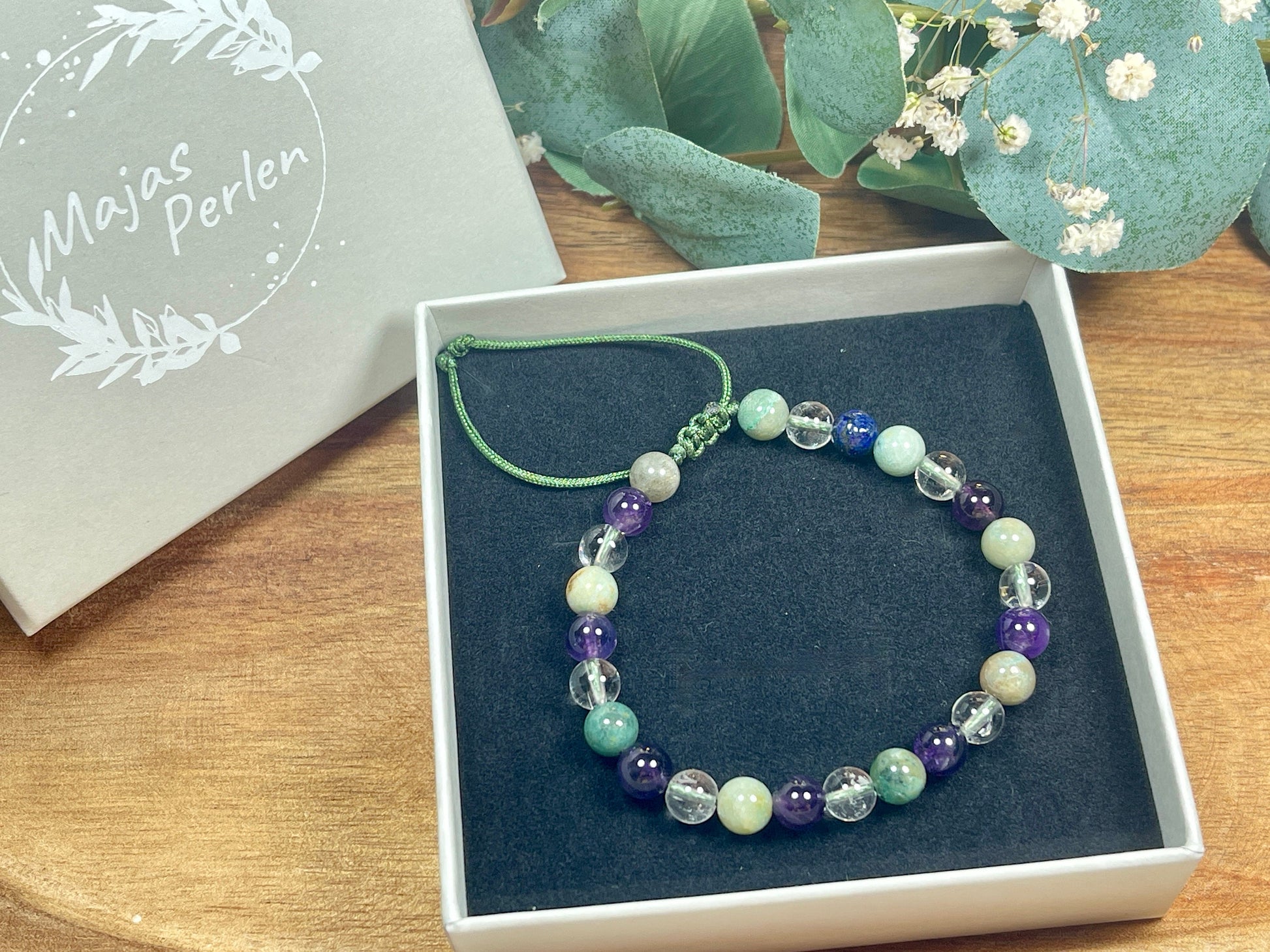 Armband Amethyst Bergkristall Chrysokoll Makramee - spirituelles Perlenarmband innere Ruhe Kommunikation Klarheit - esoterisches Geschenk