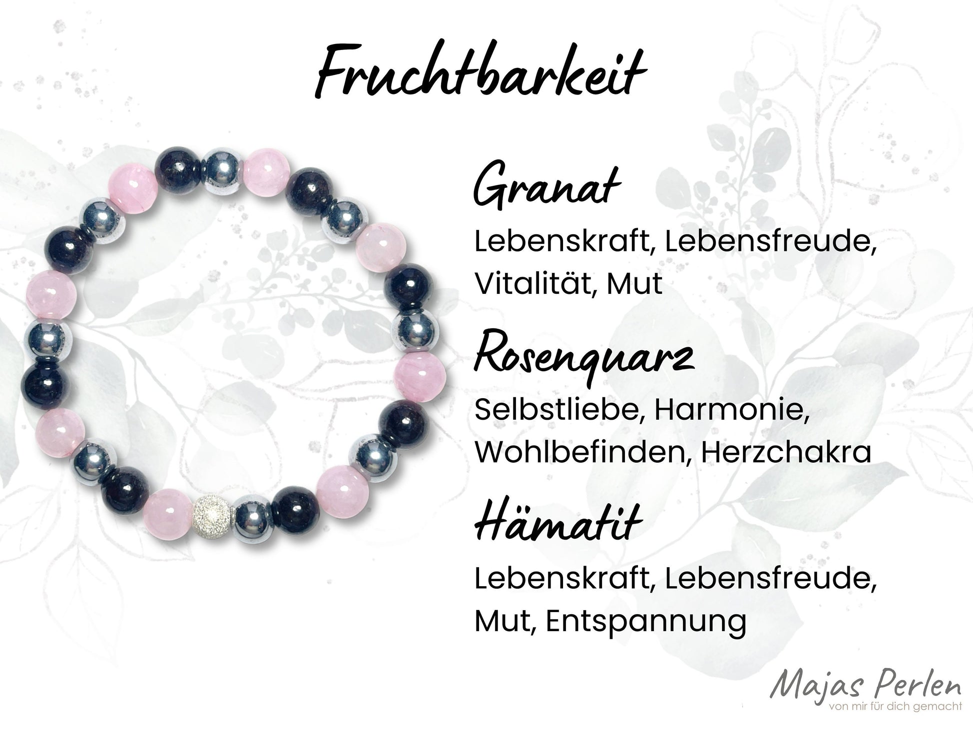 Armband Fruchtbarkeit Granat Rosenquarz Hämatit echt 8mm mit 925er Sterling Silber Gold Roségold 7mm facettiert - Handmade