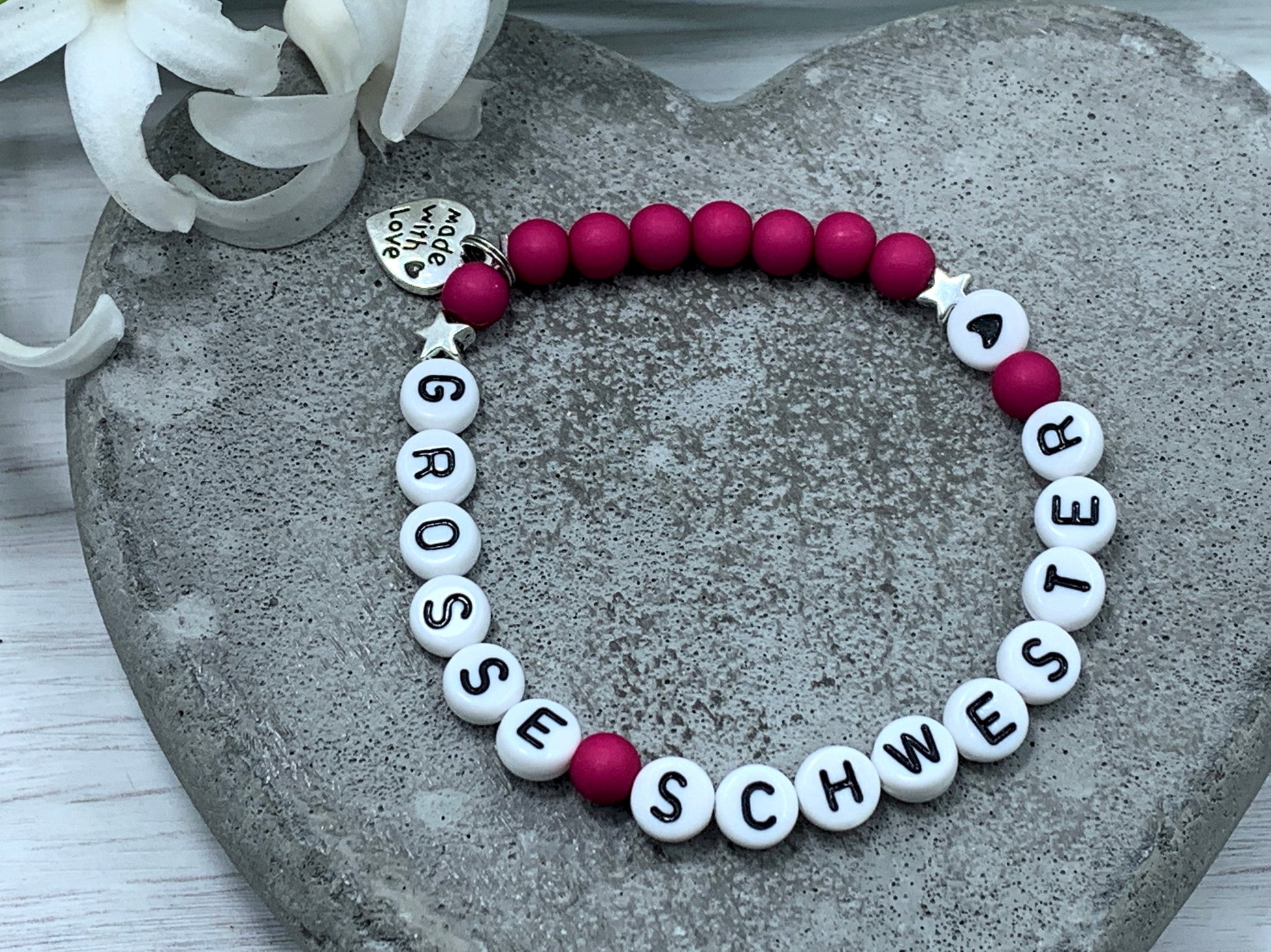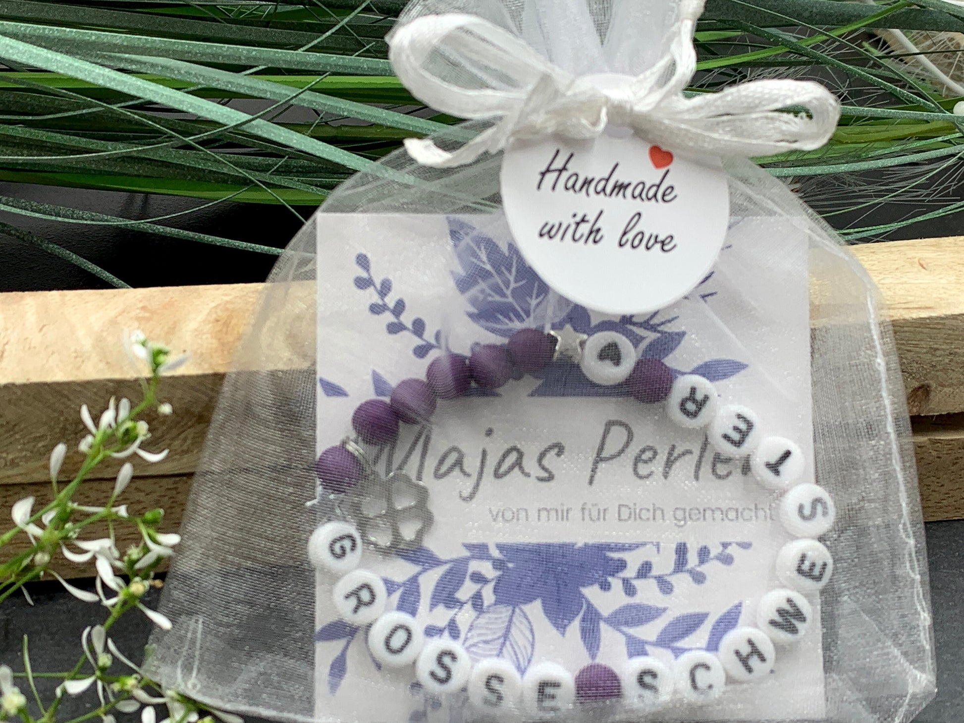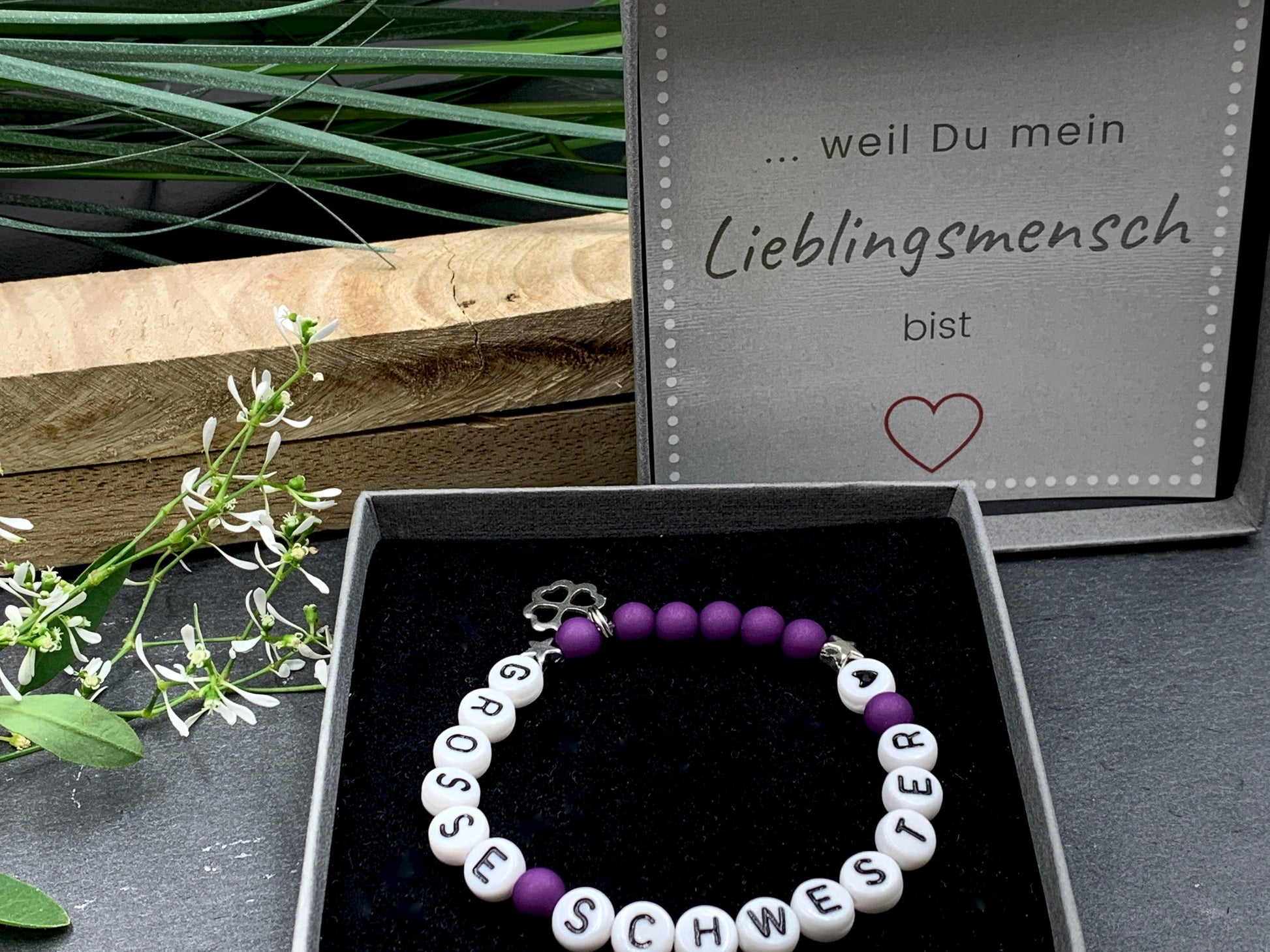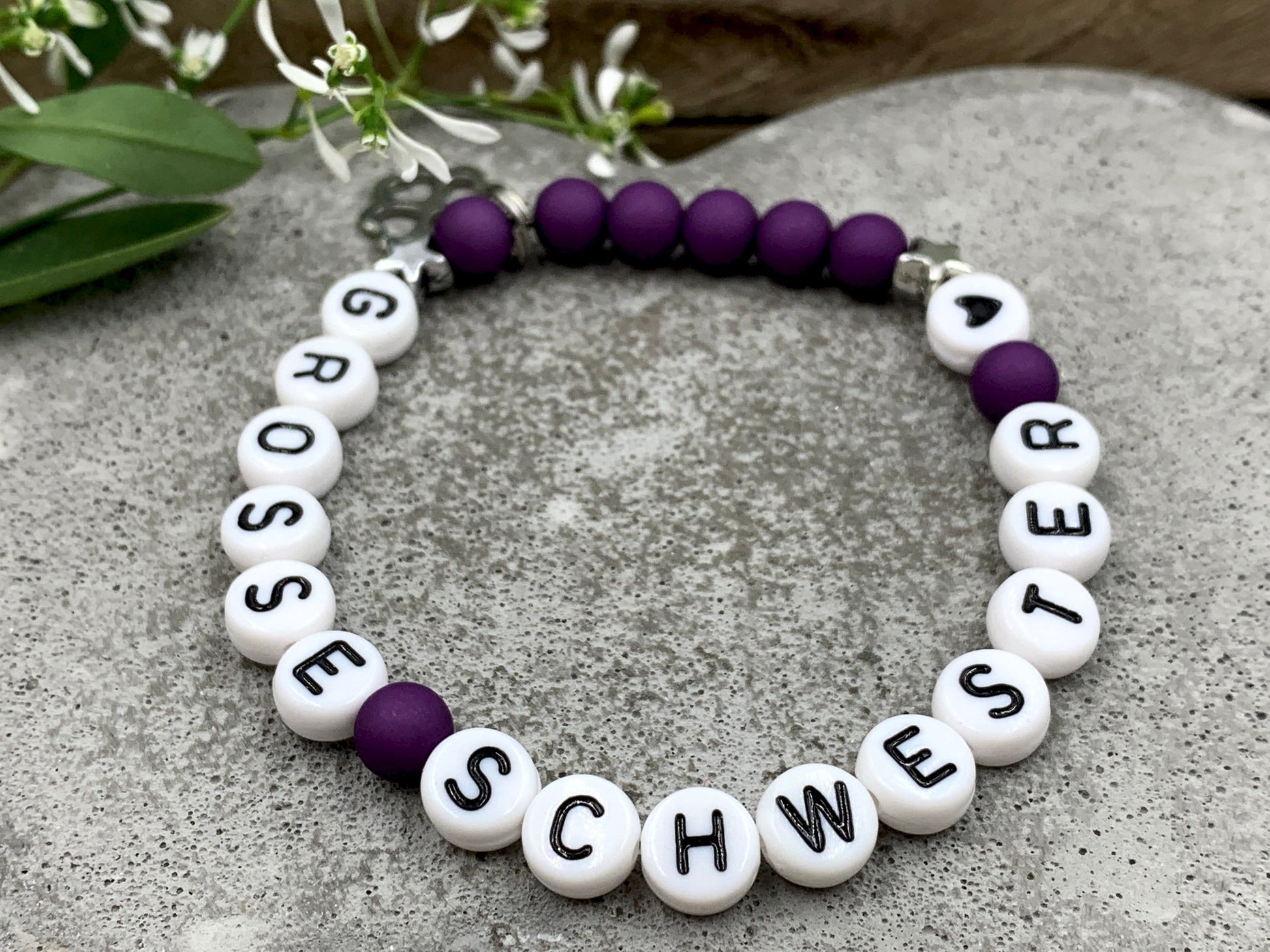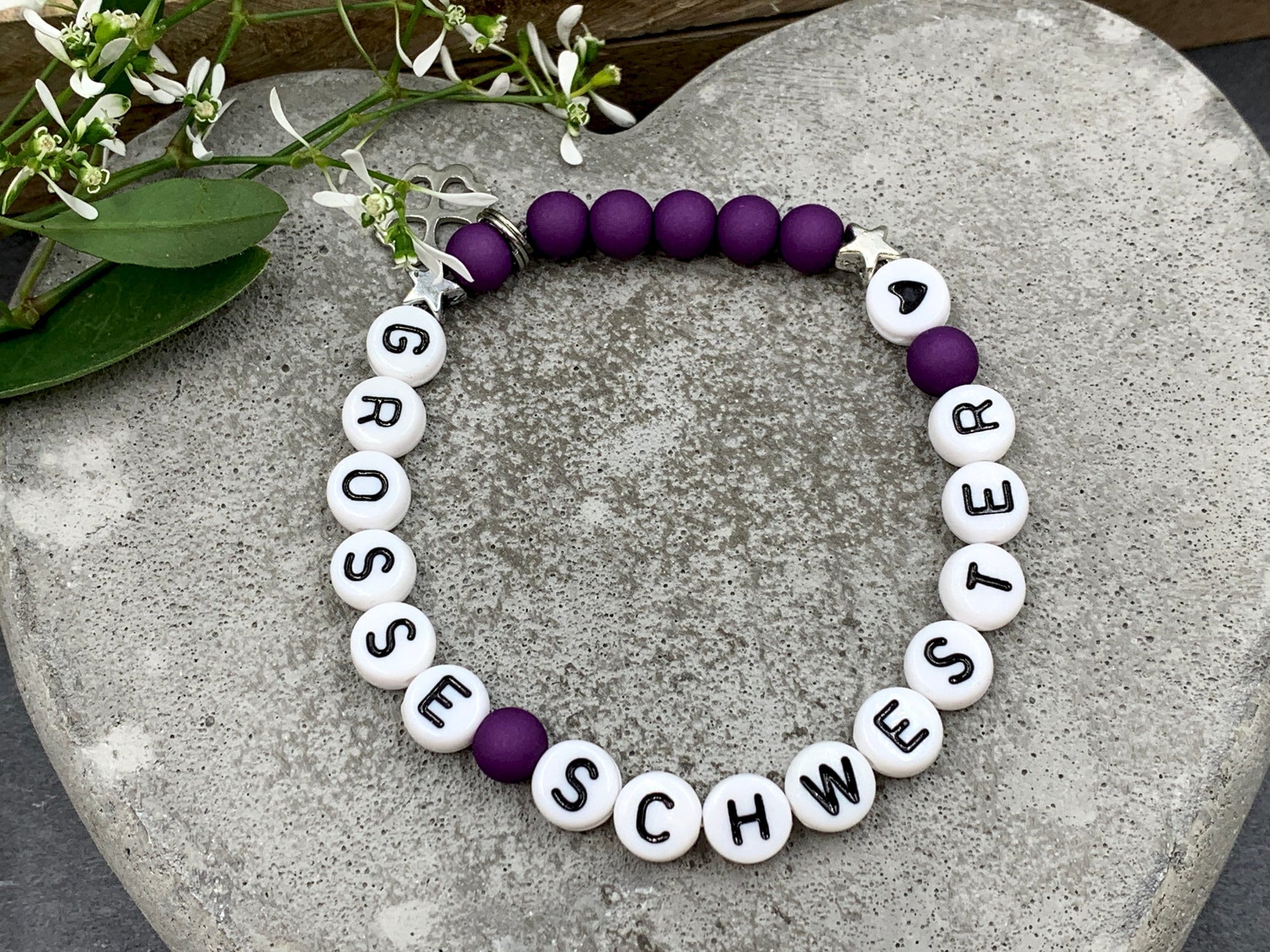 Armband Grosse Schwester Purple Acryl - Geschenk kleine Schwester kleiner Bruder Kinderarmaband mit Namen - Wunschfarbe personalisierbar