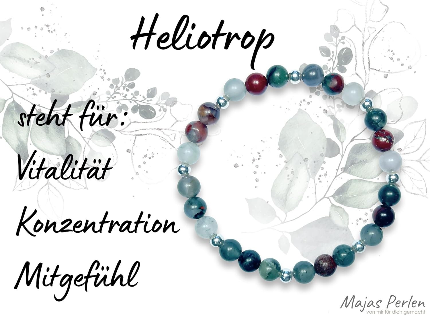 Heliotrop, auch als Blutjaspis oder grüner Jaspis bekannt, ist ein grüner bis grünlich-roter Halbedelstein. Es gibt verschiedene Überzeugungen über die metaphysischen Eigenschaften und Wirkungen des Heliotrops, aber es ist wichtig zu betonen, dass diese nicht wissenschaftlich nachgewiesen sind. Hier sind einige der traditionellen Aspekte, die dem Heliotrop zugeschrieben werden: