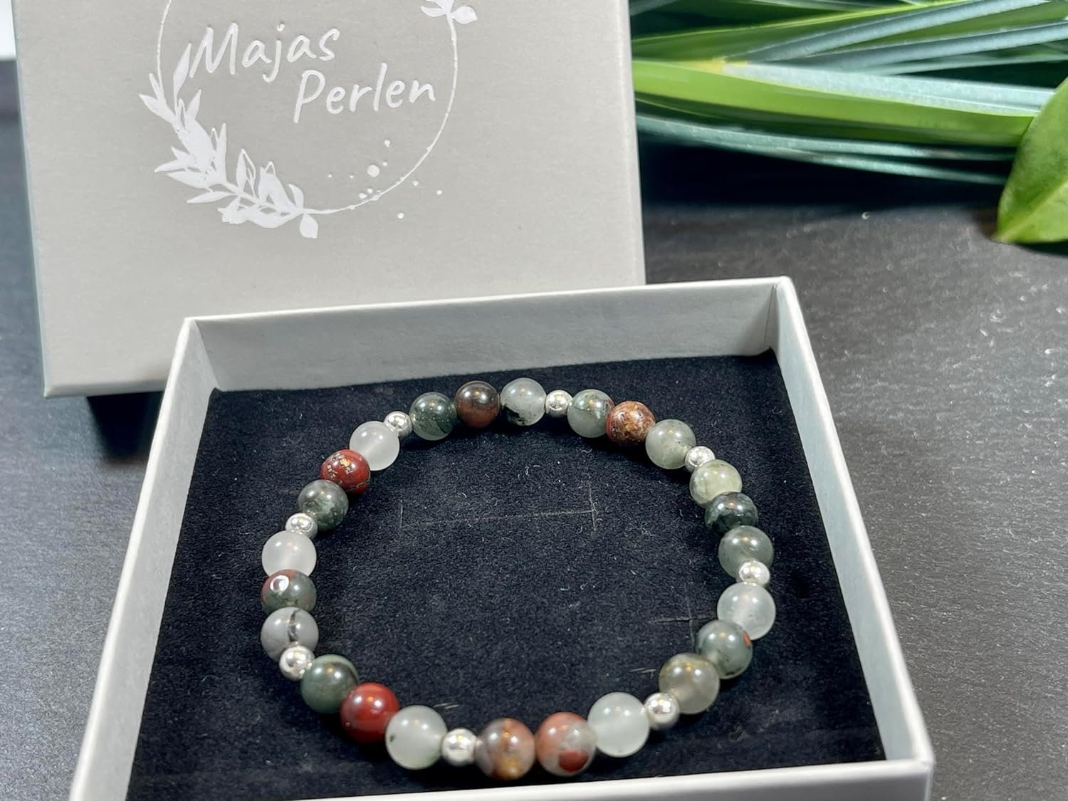 Das Armband wird sorgfältig in einem hochwertigen Samtbeutel verpackt. Falls die abgebildete Geschenkschachtel bevorzugt wird, ist diese über die Geschenkoption erhältlich.