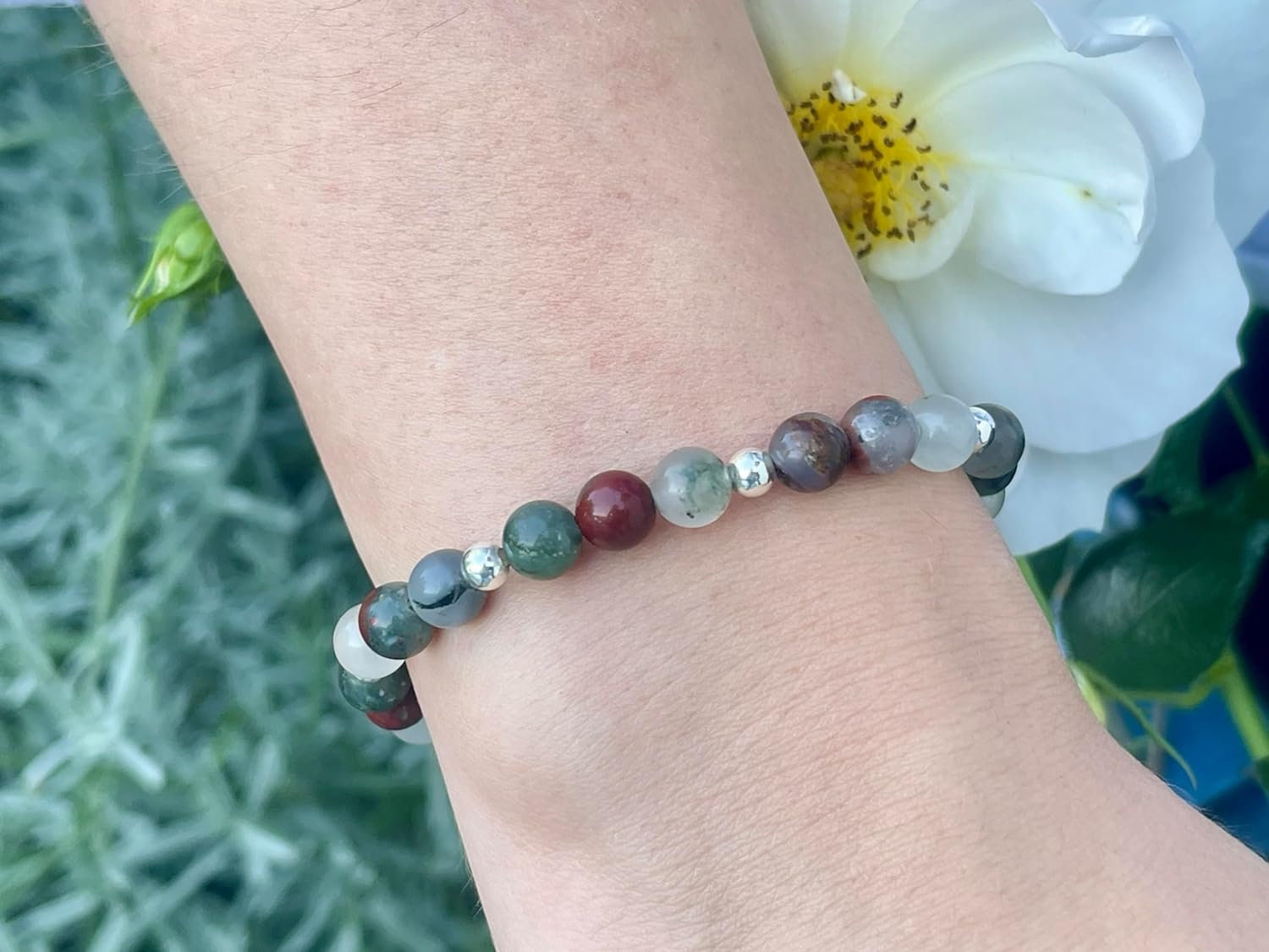 Armband Heliotrop Perlen echt 6mm mit Sterling Silber 925 Perlen Gold Roségold plated - Vitalität Konzentration Mitgefühl - Spirituell