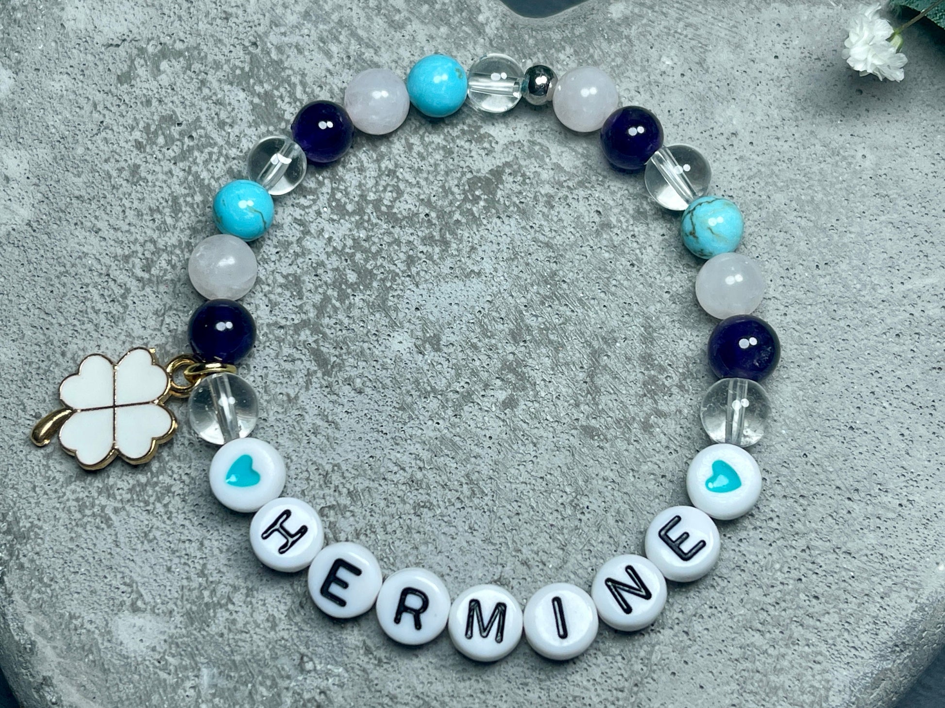 Armband mit Name Edelsteinmix Rosenquarz Amethyst Türkis Bergkristall - Geschenk Geburt Kinderarmband Baby Mädchenarmband - personalisierbar