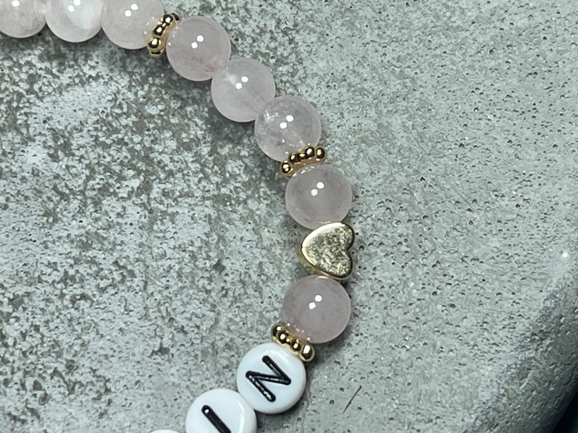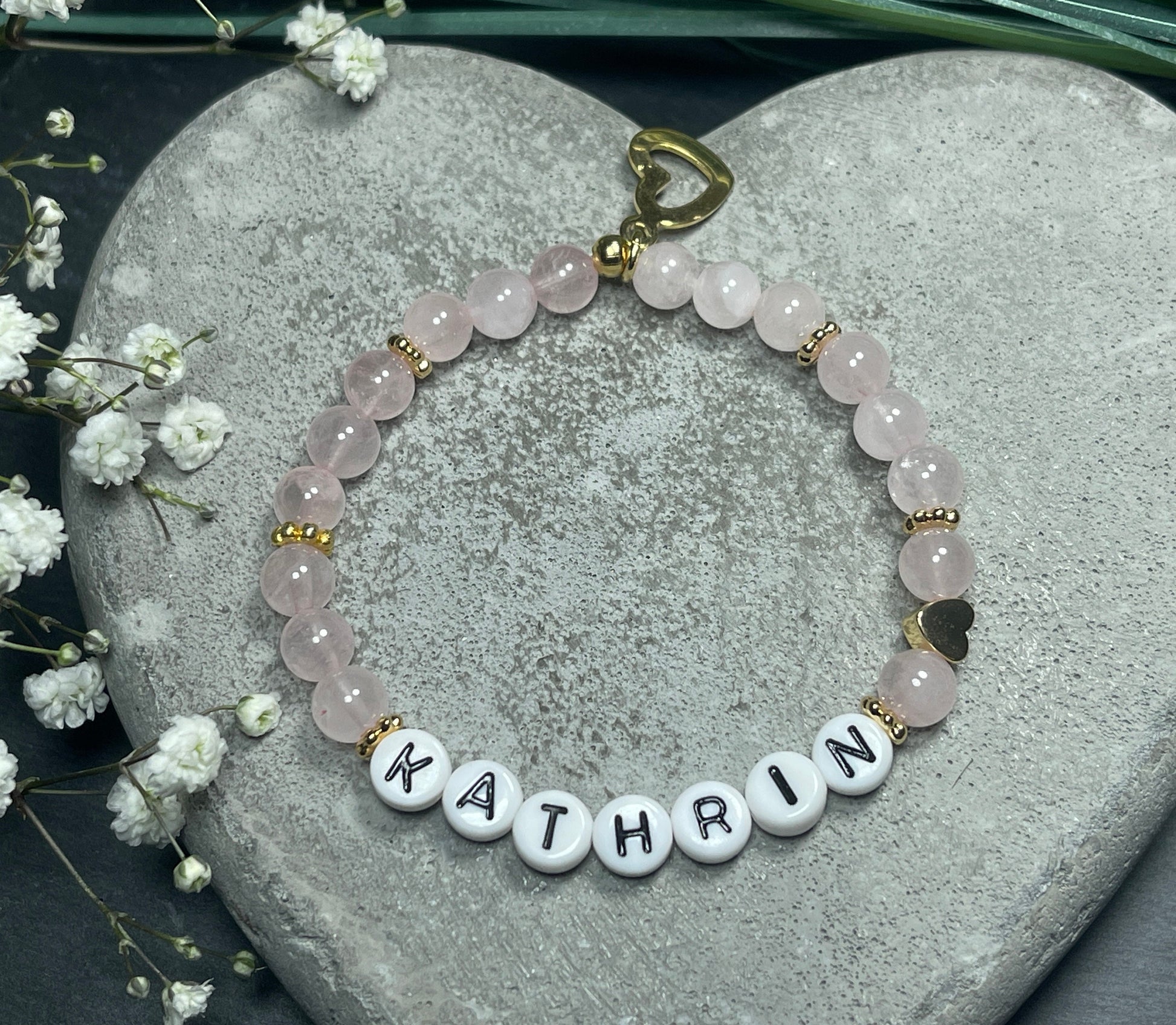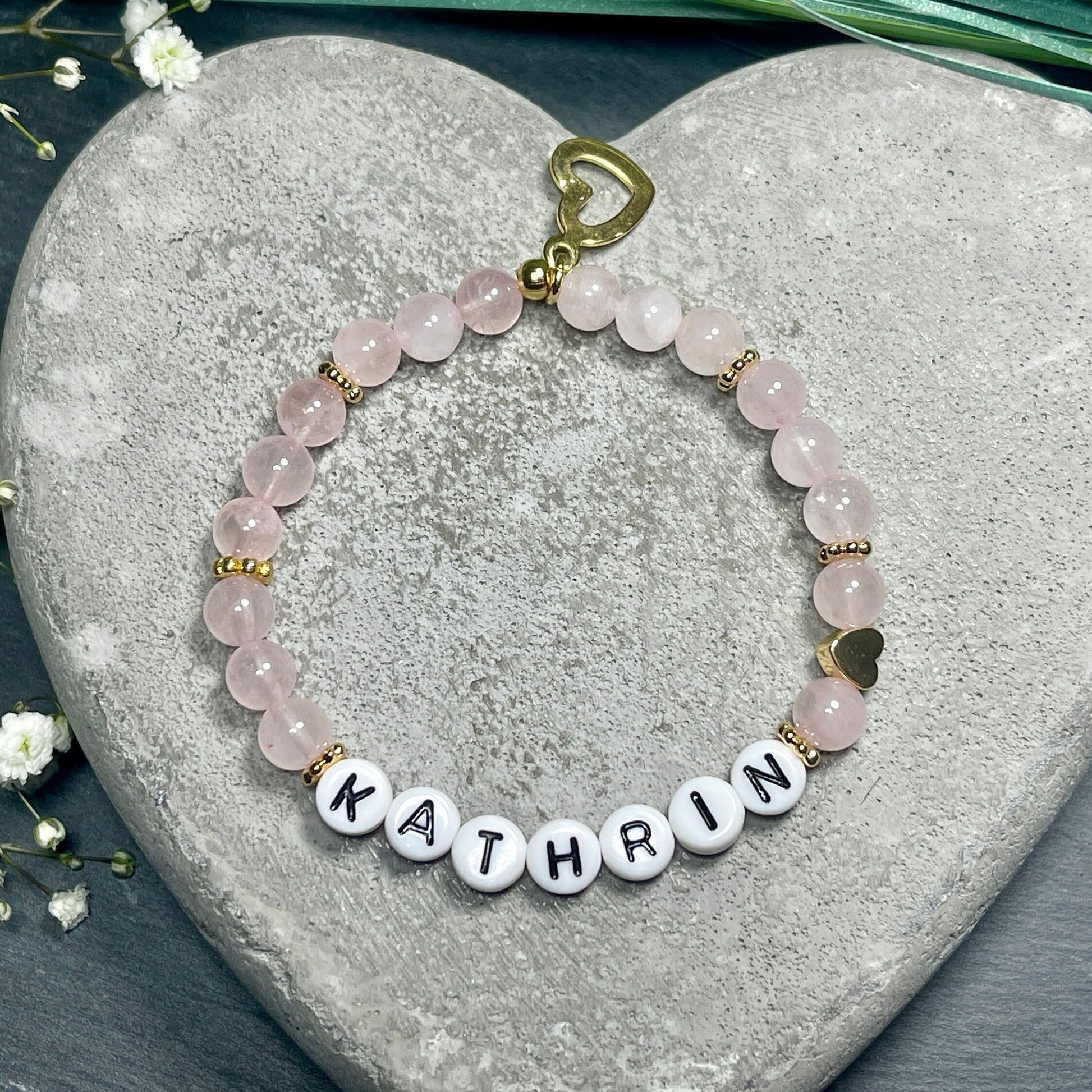 Armband Name Rosenquarz gold - Herz echt Vergoldet - Geschenk Schwangerschaft Baby Geburt Mädchenarmband Lieblingsmensch Mama