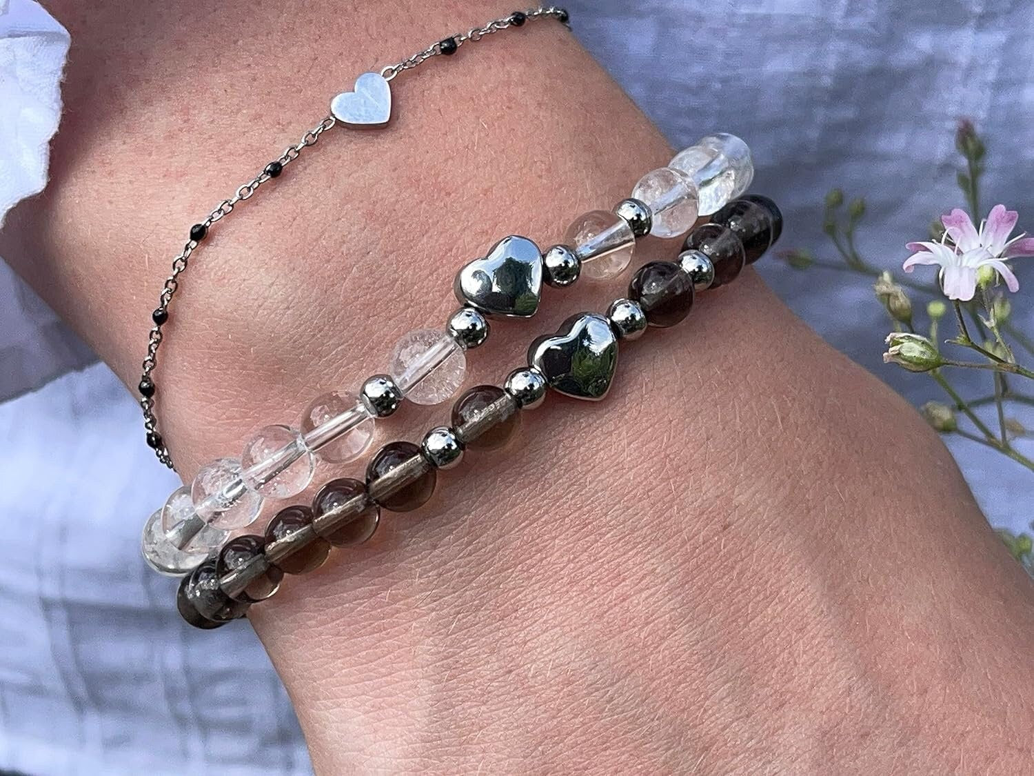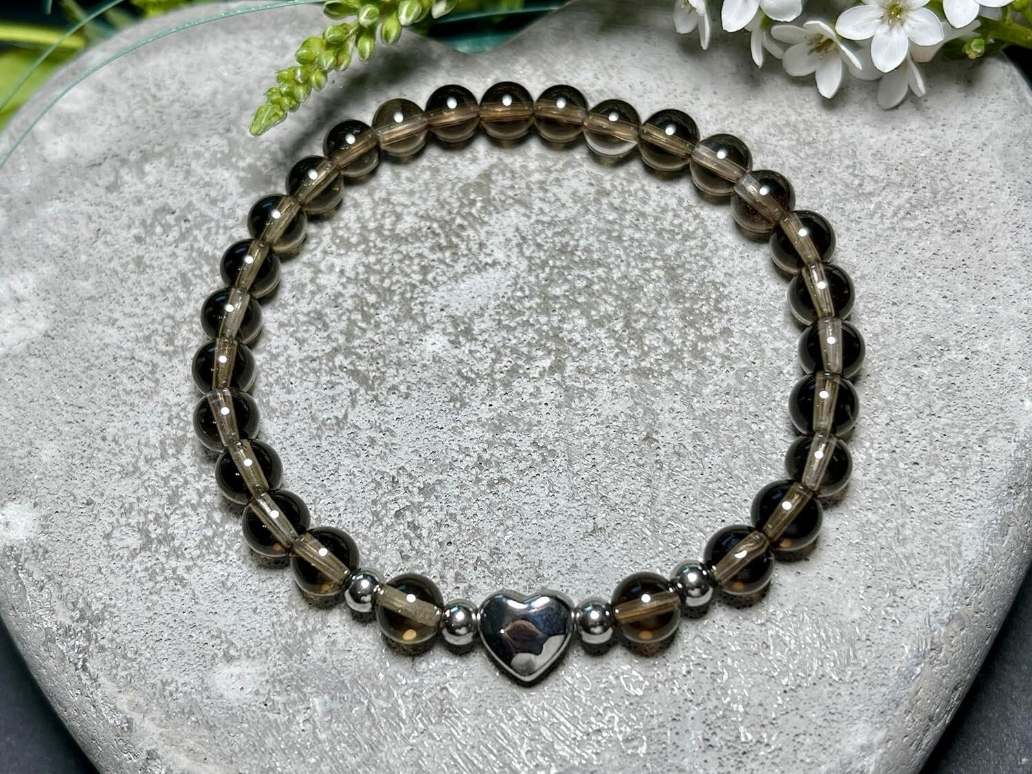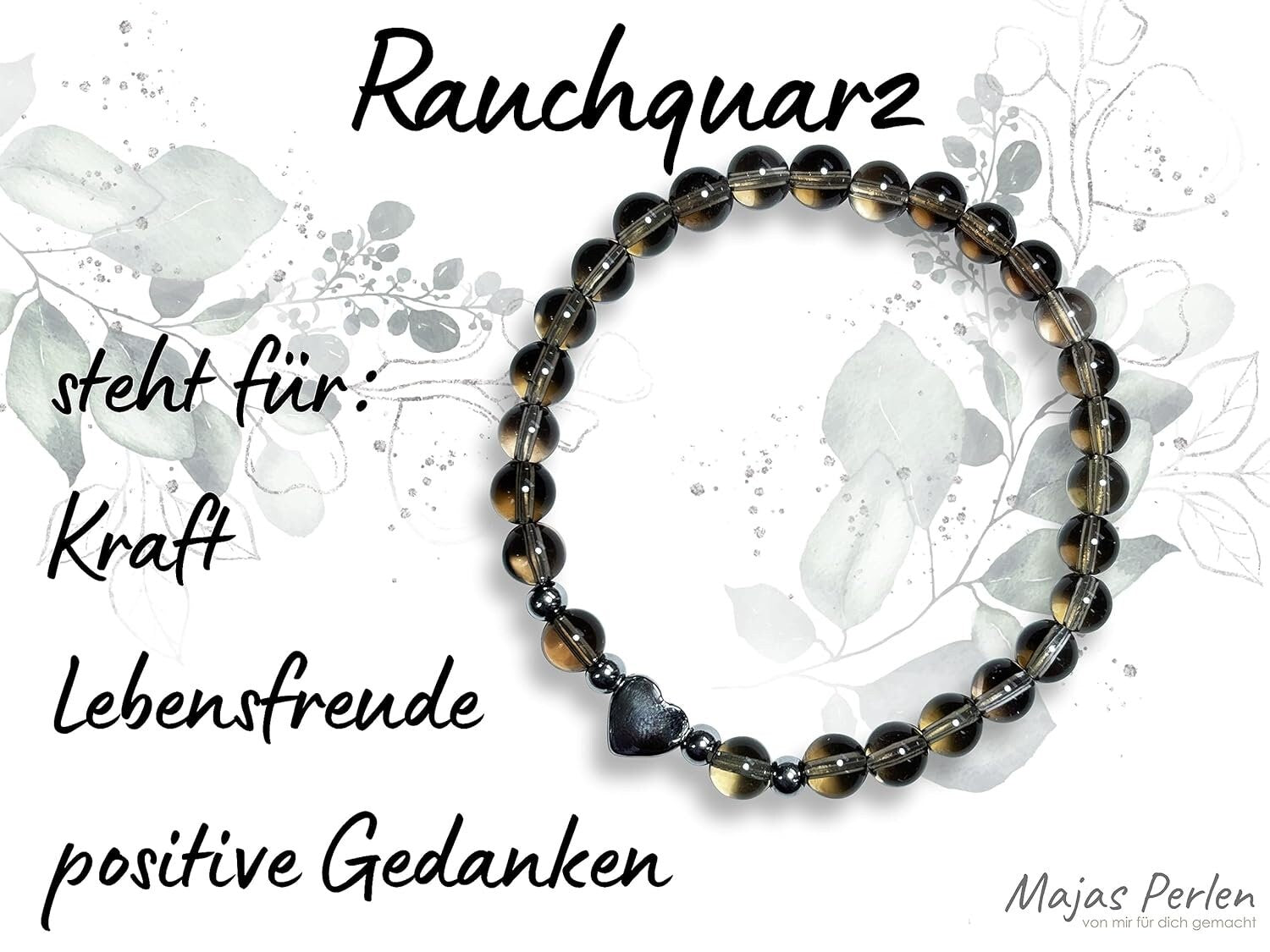 Armband Rauchquarz Herz Edelstahl Silber - Perlenarmband Kraft Lebensfreude positive Gedanken - Spiritueller Schmuck Damen Mädchen
