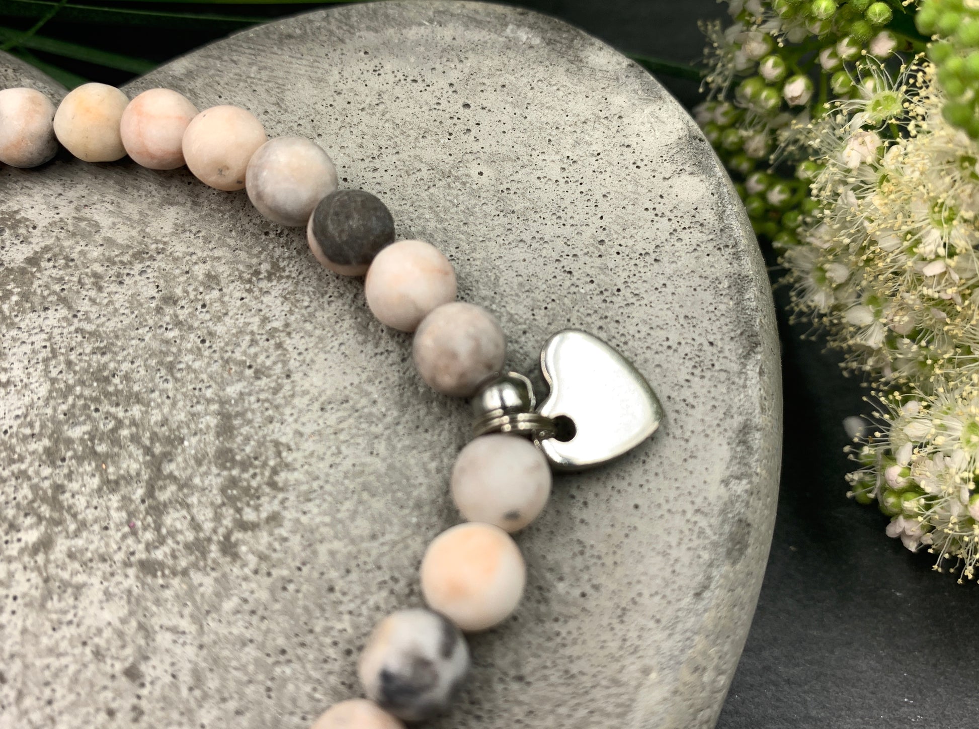 Geschenk für einen Paten oder eine Patentante. Ein schönes Geschenk für eine zukünftige Patentante oder einen Paten. Einfach als Wunschtext eingeben. Wunderschönes und edles Armband aus polierten Zebra Jaspis Perlen.
