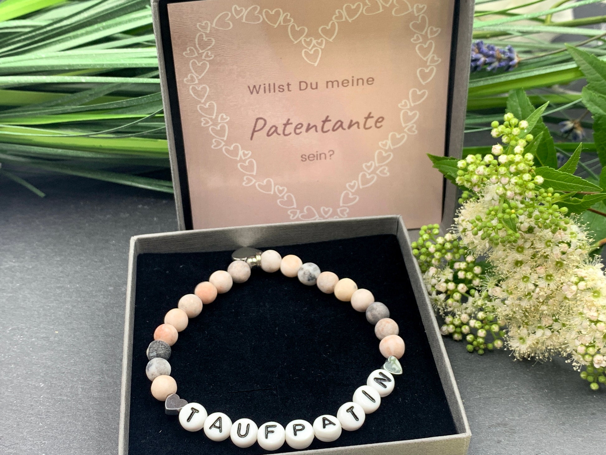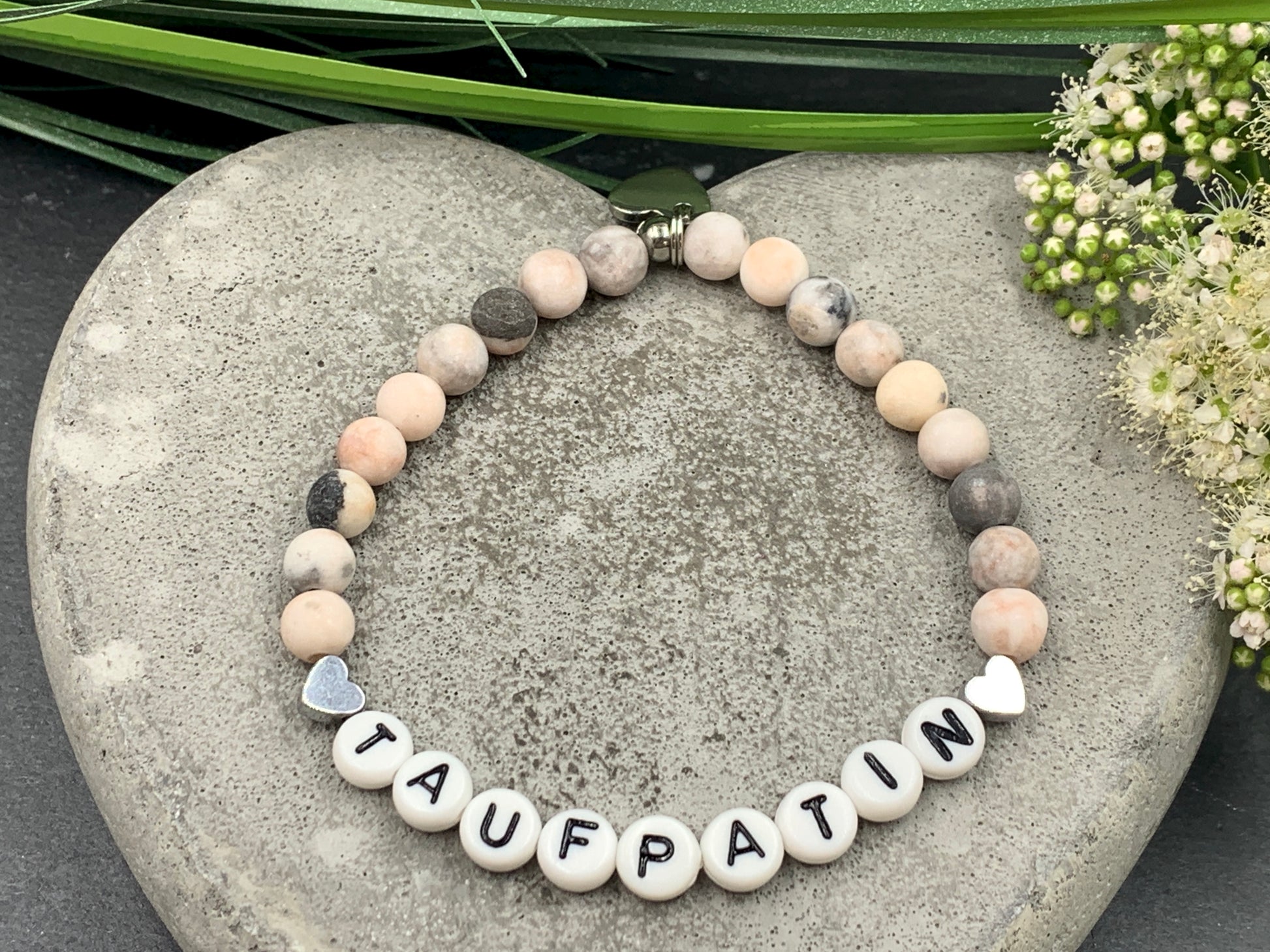 Armband Taufpatin Zebra Jaspis - Andenken Taufe Taufgeschenk - Frage Patenschaft - Willst Du meine Patentante sein? - Handmade personalisierbar