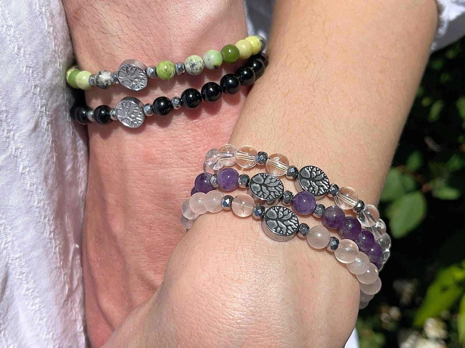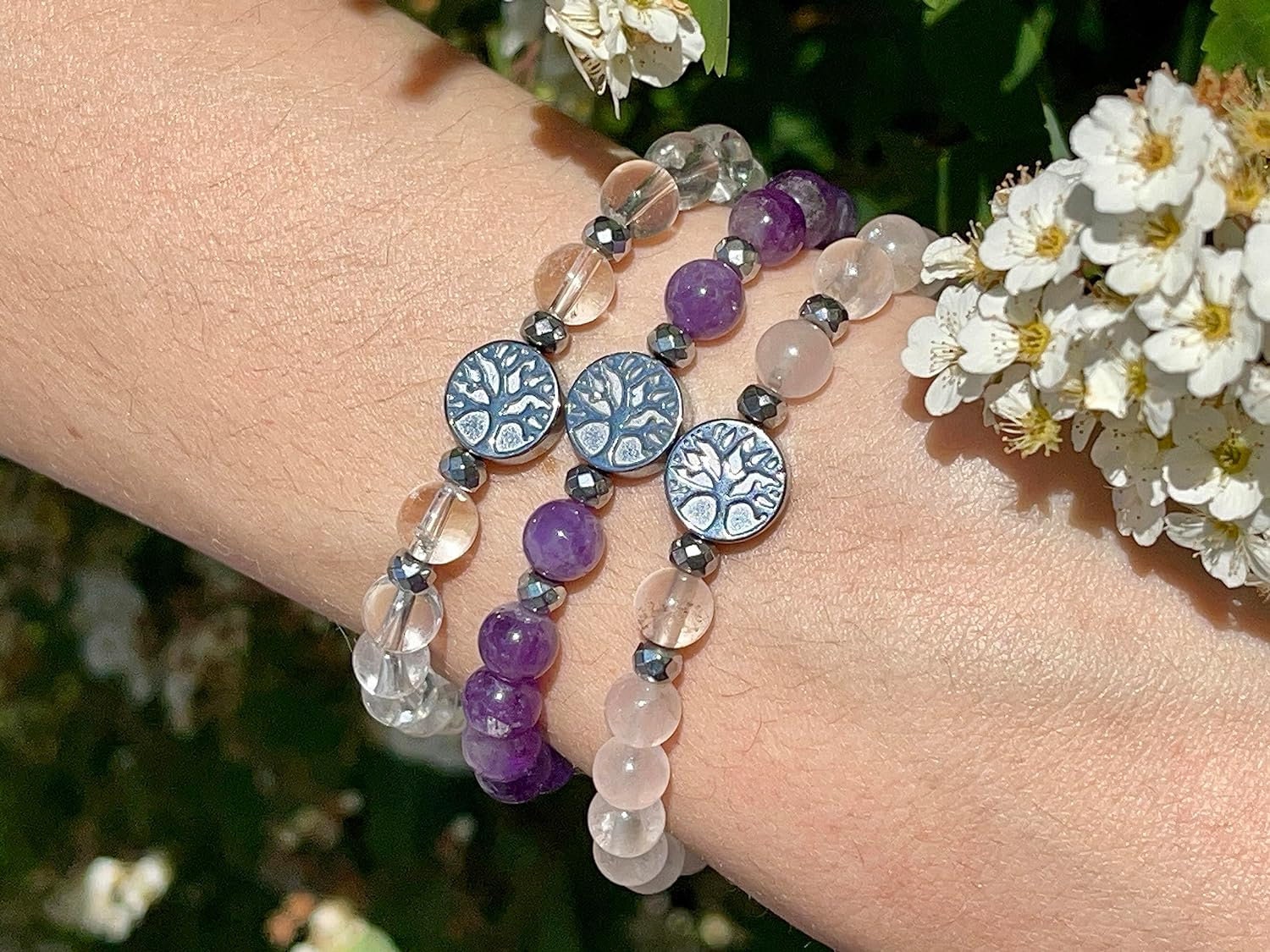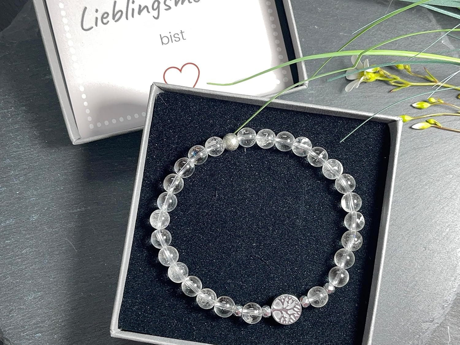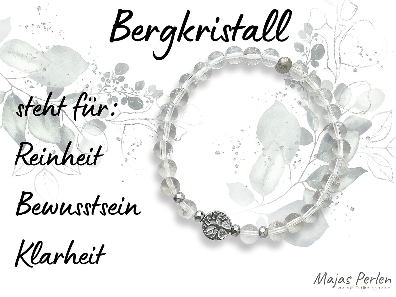Bergkristall Armband Perlen echt 6mm Lebensbaum Hämatit Silber - Handmade Perlenarmband Reinheit Bewusstsein Klarheit - Spiritueller Schmuck