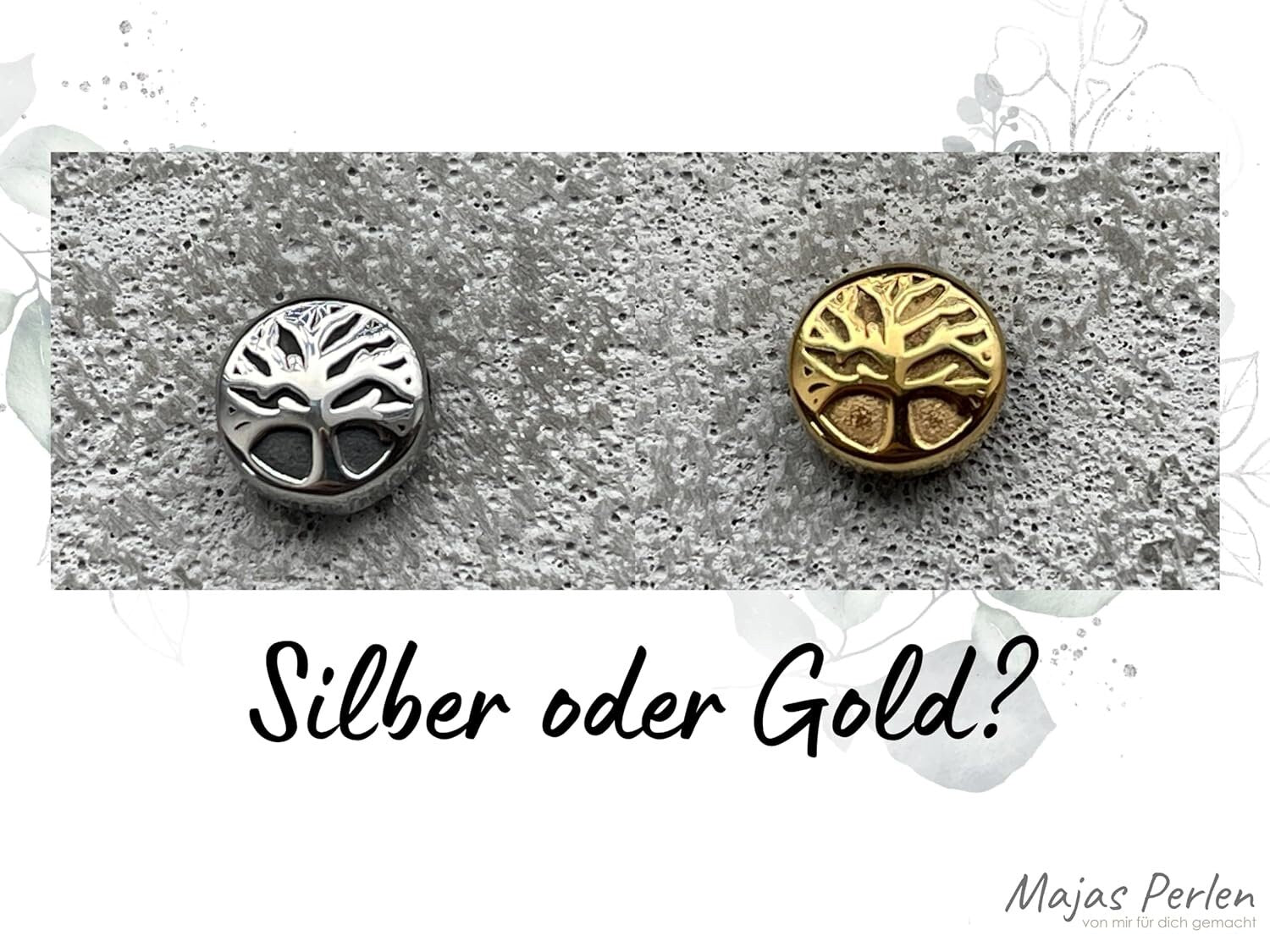 Bei diesen zu 100 % handgearbeiteten Armbändern achte ich auf hochwertigste Materialien, die auch Wasser vertragen. Die Lebensbaumperlen und die kleinen Perlen sind aus Edelstahl und wahlweise in Silber oder Gold zu erhalten.