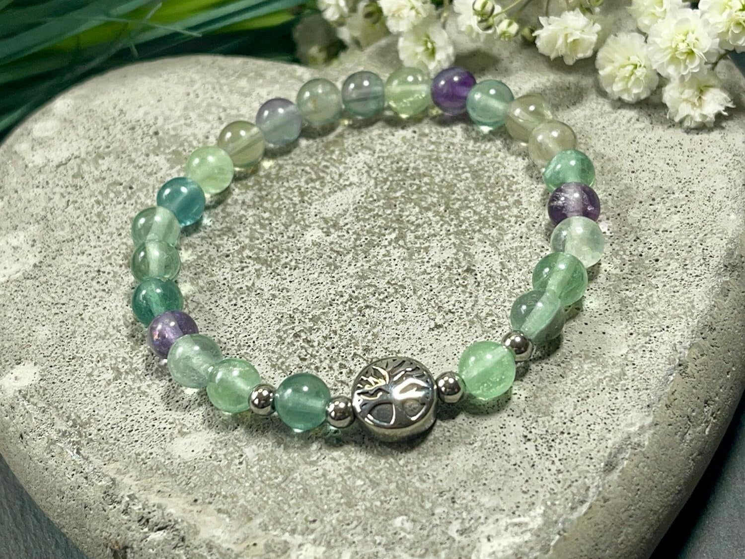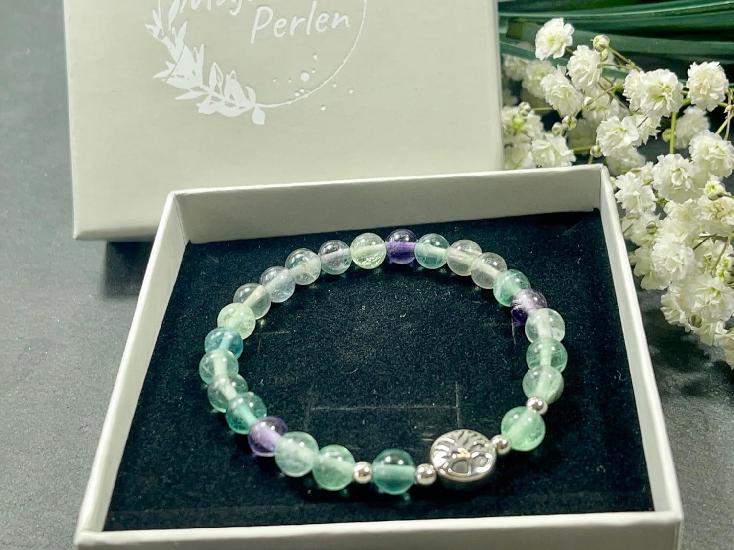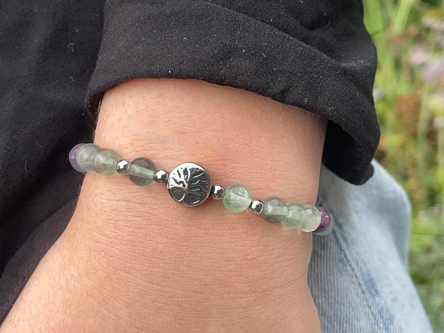 Das Armband aus Fluoritperlen, kombiniert mit Edelstahl Lebensbaum ist ein stilvolles Schmuckstück, das sowohl ästhetisch ansprechend als auch energetisch wertvoll ist.