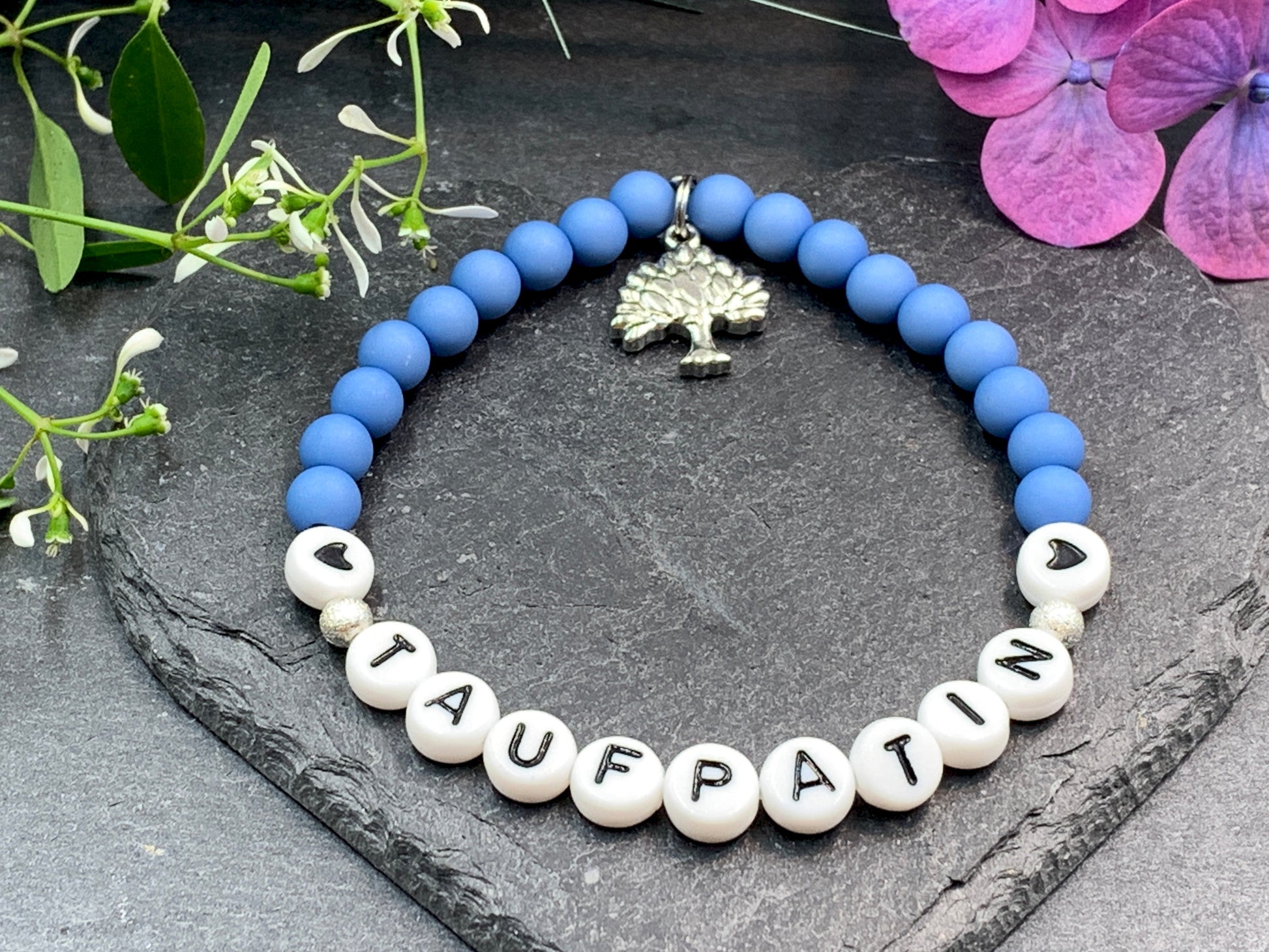 Armband Taufpatin blau, Geschenk Taufe, Patenschaft, Willst Du meine Taufpatin sein?