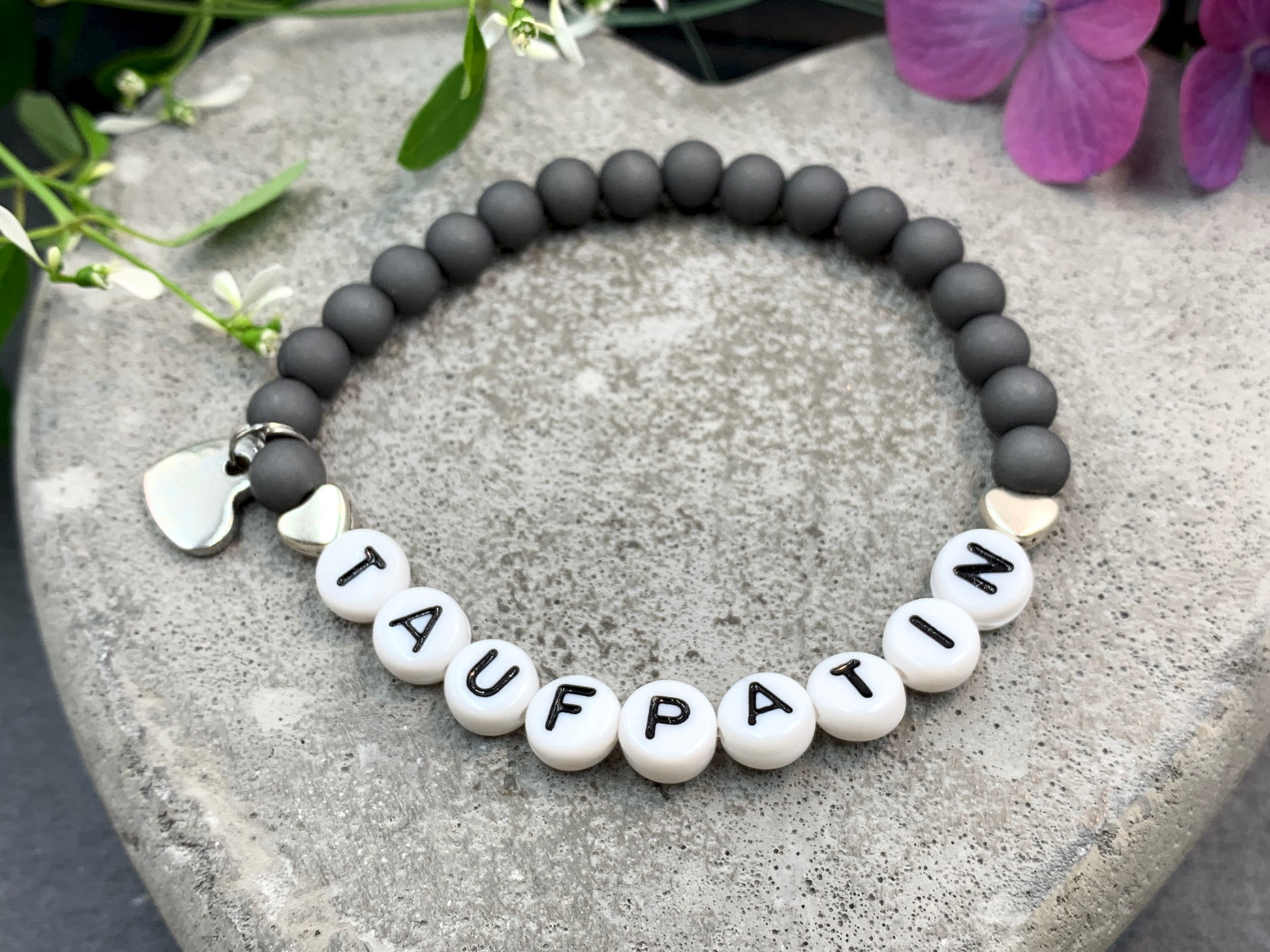 Geschenk für einen Taufpaten oder eine Taufpatin. Dieses Armband kann ich zusätzlich mit dem Namen des zu taufenden Kindes versehen. Schönes Geschenk für einen zukünftigen Paten. Einfach als Wunschtext eingeben.
