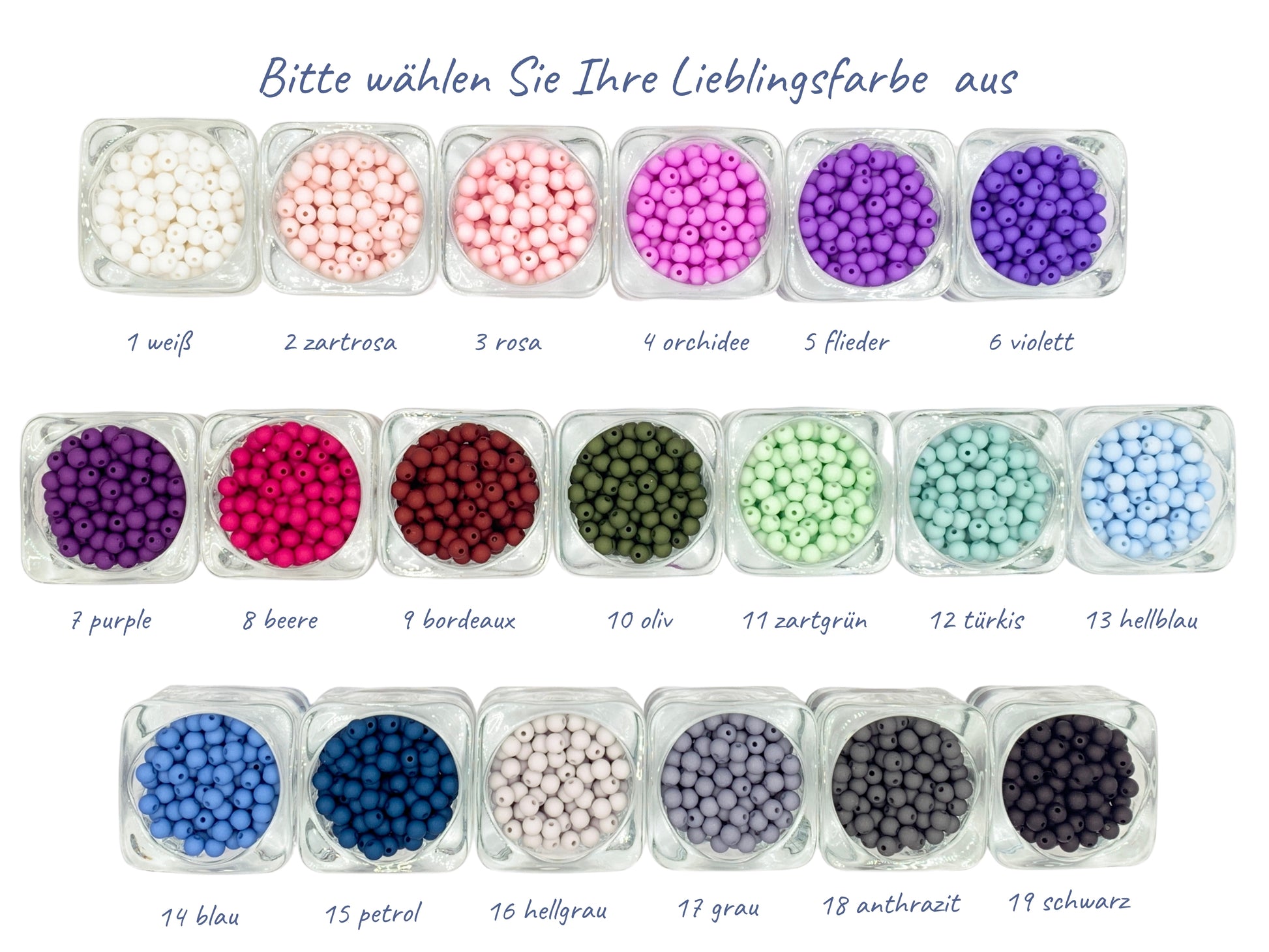 ♡ Farbauswahl der Acrylperlen, die möglichen Farben habe ich mit Zahlen versehen, damit ich Deinen Farbwunsch präzise umsetzen kann. Durch die verschiedenen Bildschirmeinstellungen kann Dein Armband farblich etwas abweichen.