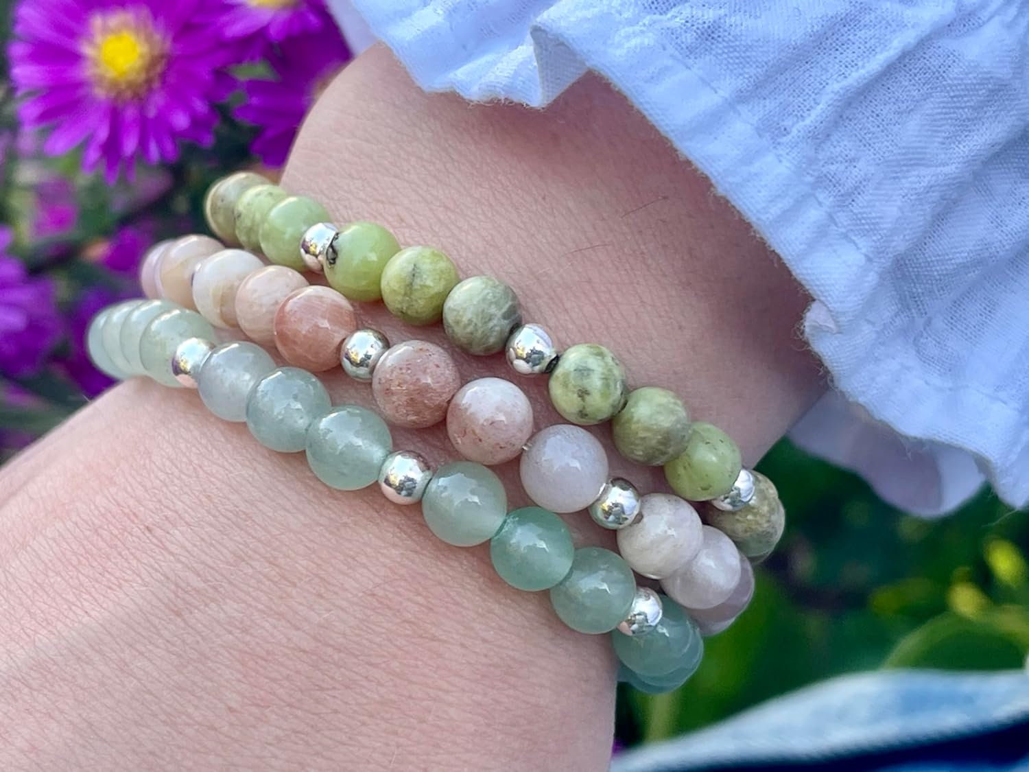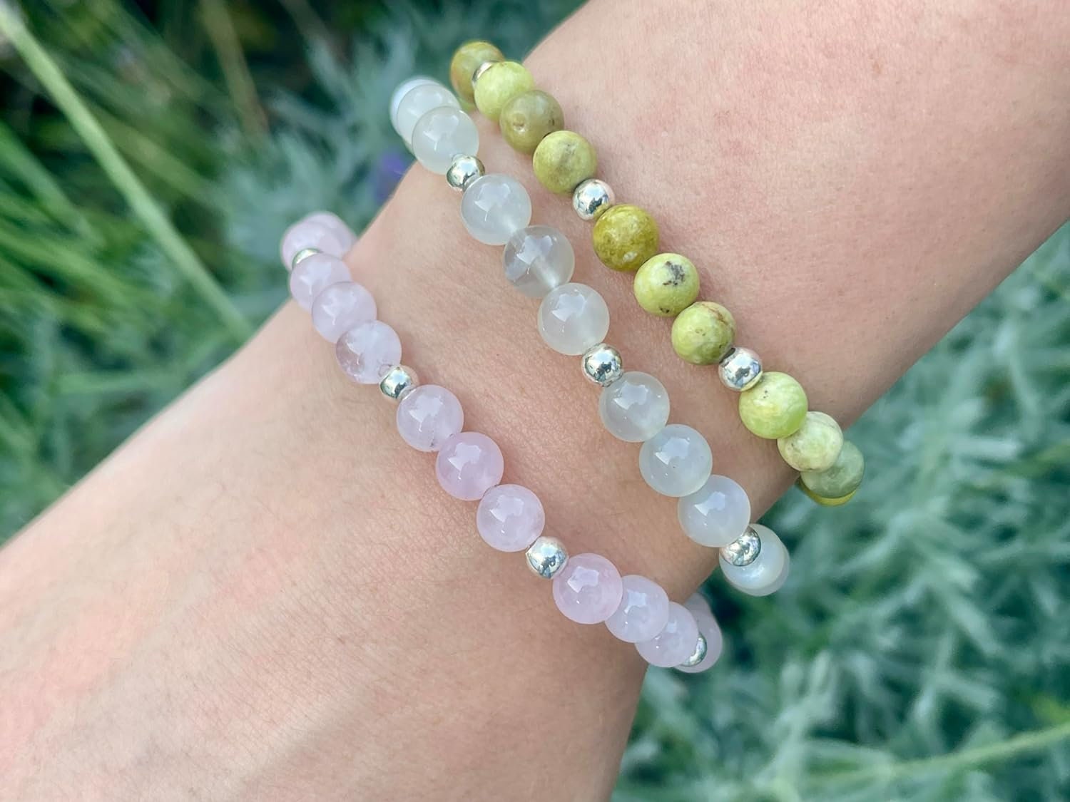 Peridot Armband Perlen echt 6mm mit Edelstahlperlen 4mm Silber Gold oder Roségold spirituelles Perlenarmband Freude Toleranz Gelassenheit