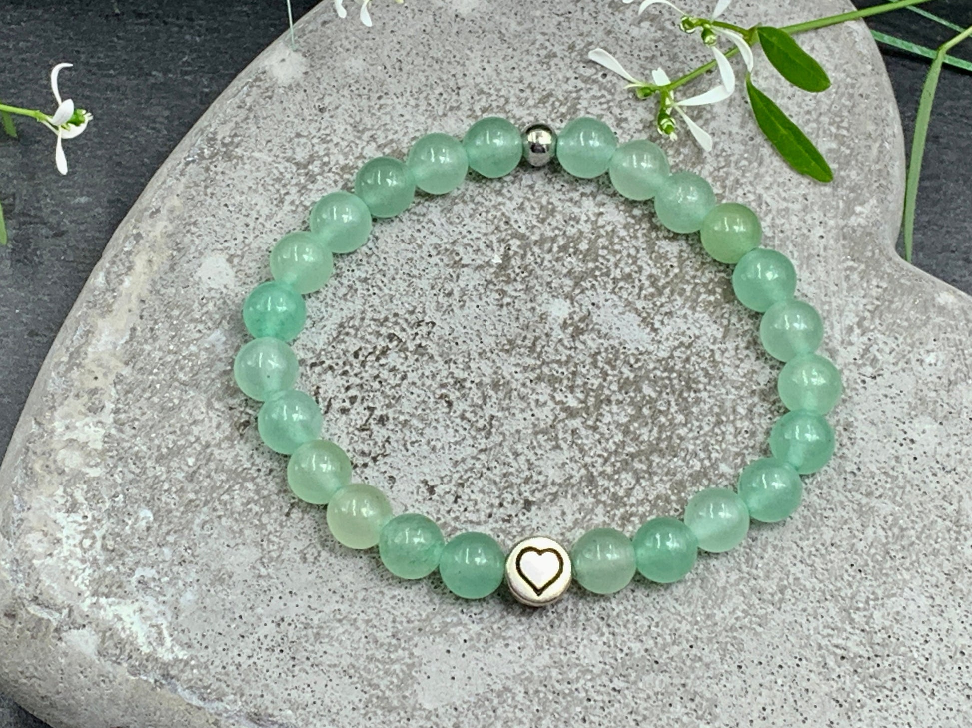 Perlenarmband Aventurin echter Naturstein mit Herz DQ - Silber Gold Roségold Gunmetal - spirituelles Armband - Geschenk Liebe Glück Freundin