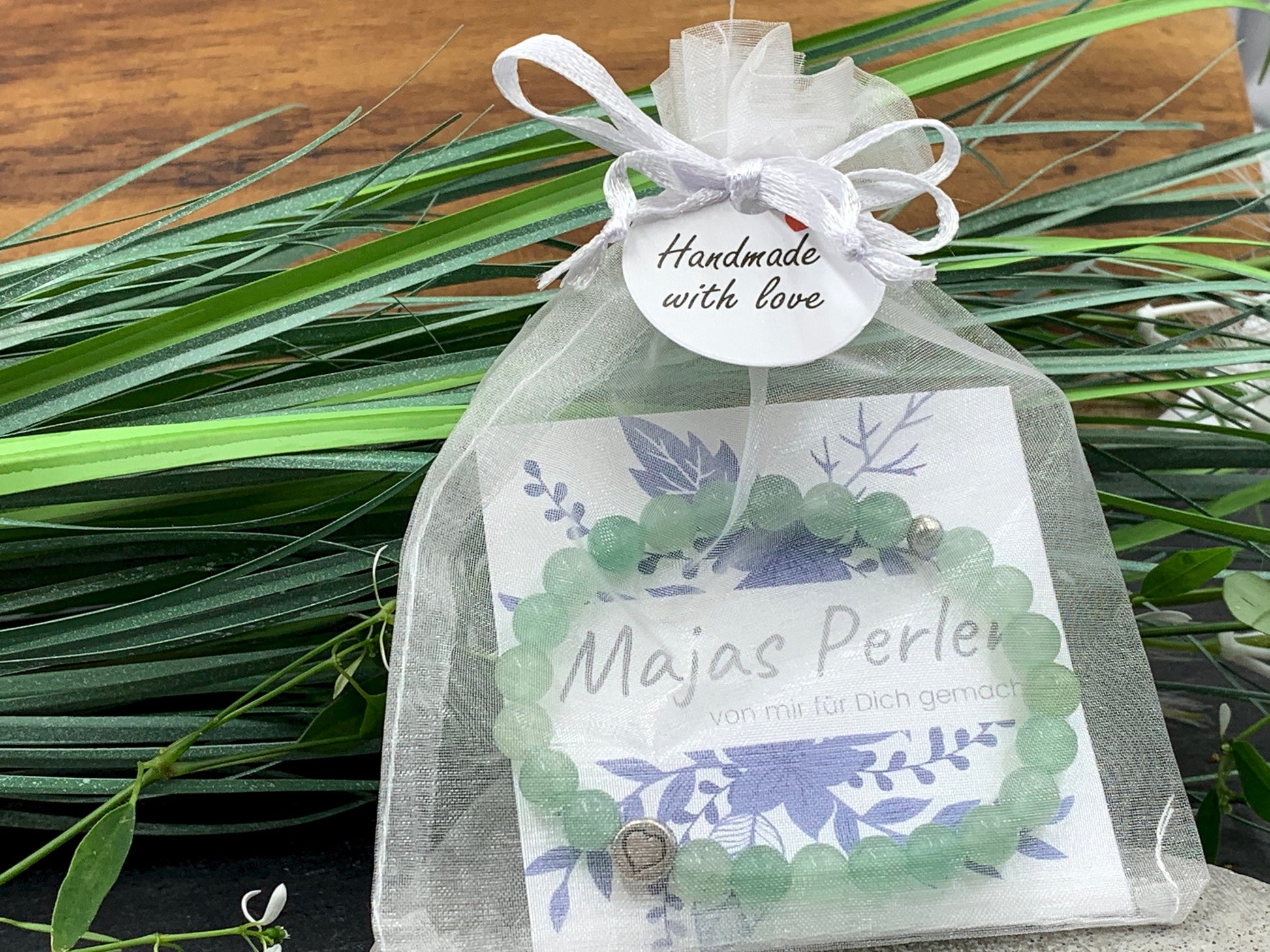 Das Perlenarmband wird ansprechend in einem Samtbeutel verpackt und ist somit sofort als Geschenk bereit. Alternativ besteht die Möglichkeit, eine Geschenkbox mit Geschenkkarte über die Geschenkoption zu wählen.