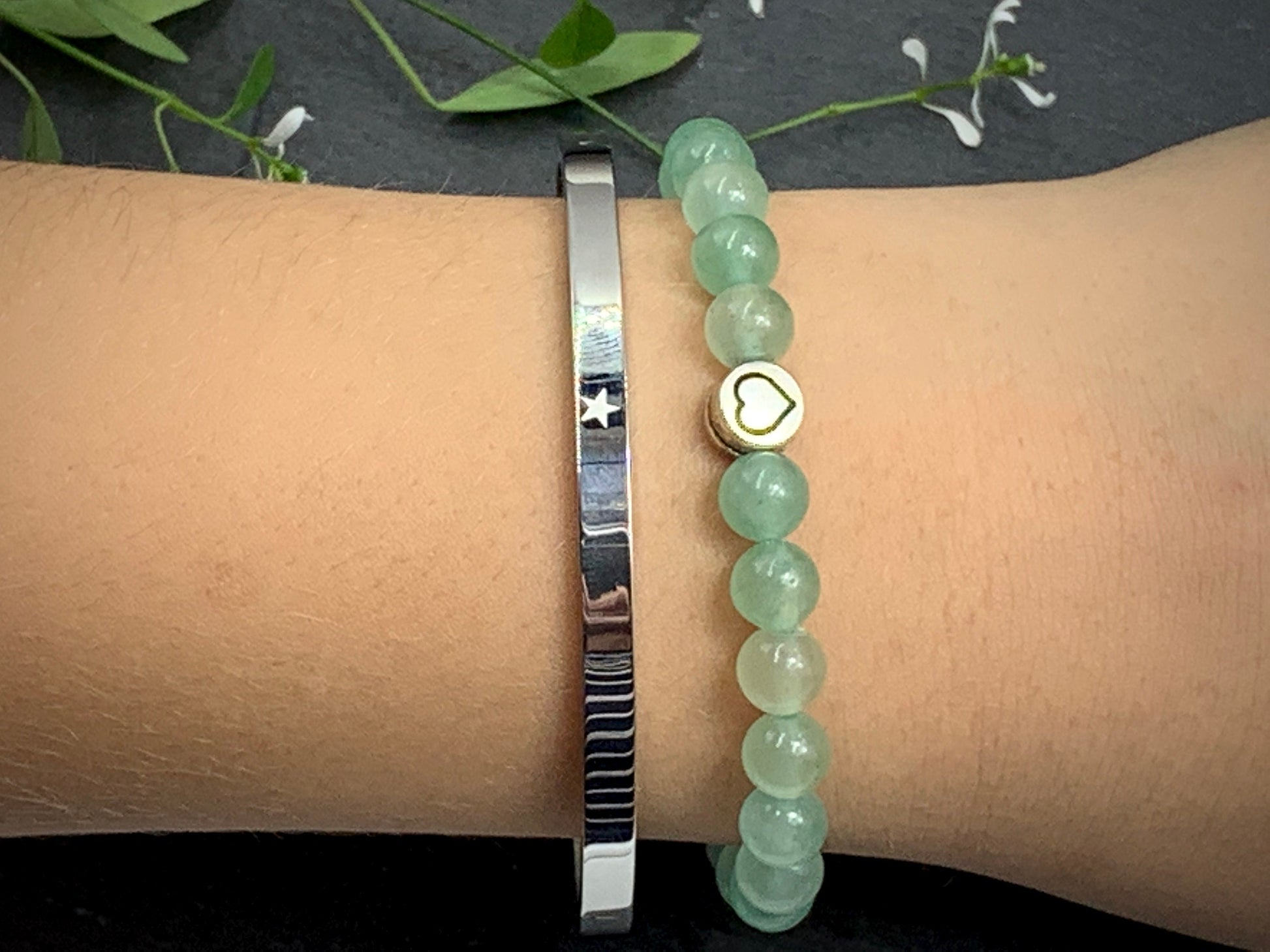 Entdecke dieses bezaubernde Armband aus poliertem Aventurin – ein wahrhaft traumhaft schöner Edelstein, den ich zu einem einzigartigen Accessoire geformt habe.