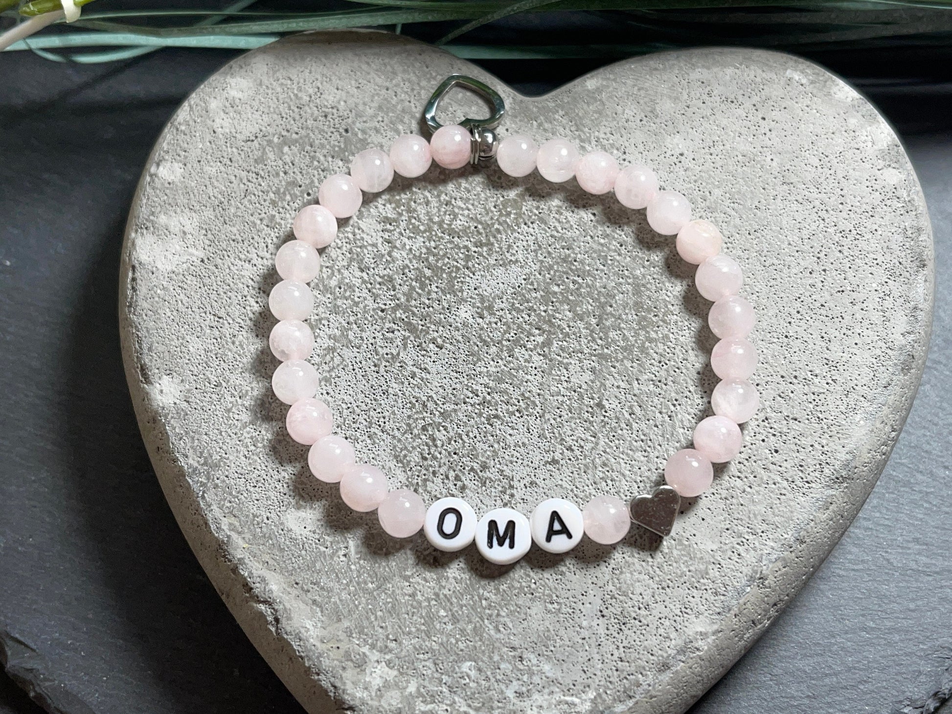 Perlenarmband Rosenquarz Oma - Geschenk Mama Geburt Liebe Andenken Lieblingsmensch Taufe - Wunschedelstein personalisierbar