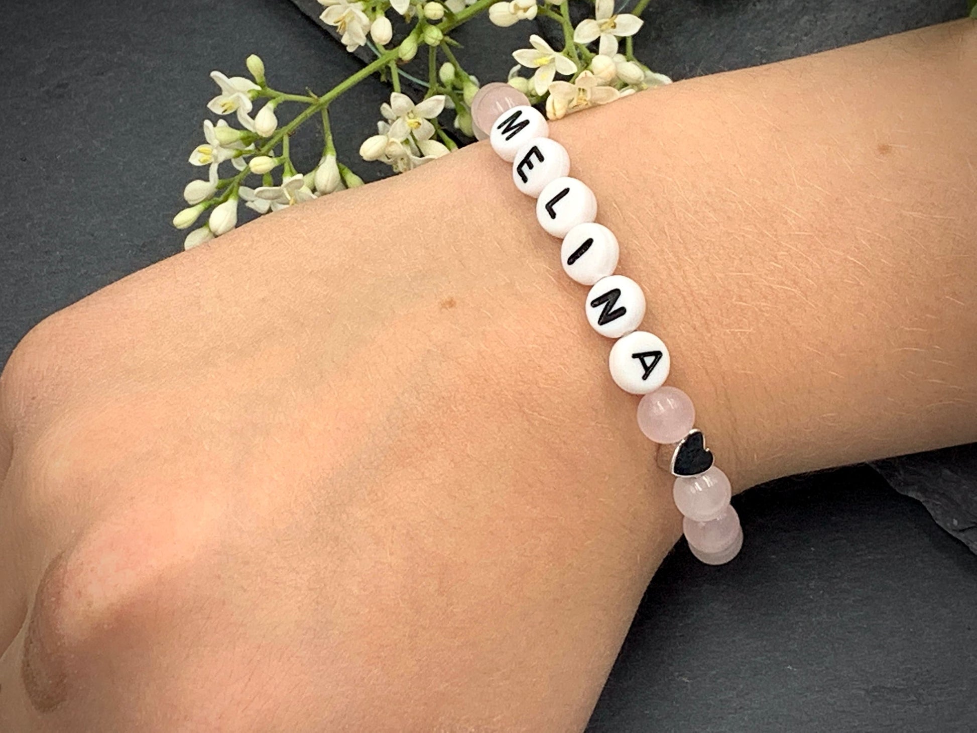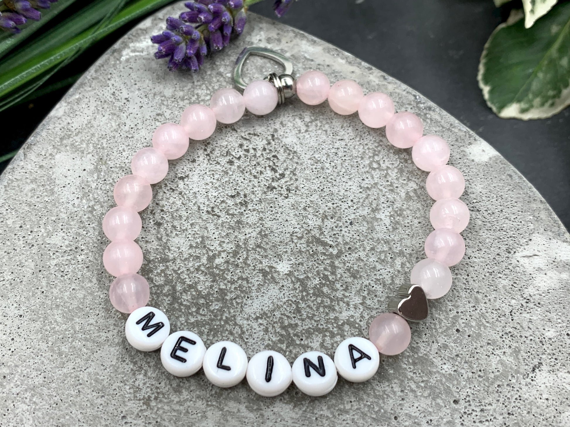 Das Armband aus Rosenquarz ermöglicht es dir, den Namen deines Lieblingsmenschen immer bei dir zu tragen - für alle sichtbar.